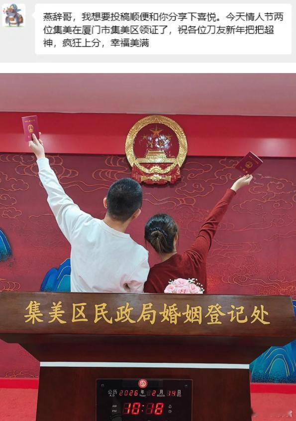 来自粉丝投稿:两位Ame的粉丝在厦门市集美区领证了!恭喜啊!dota2