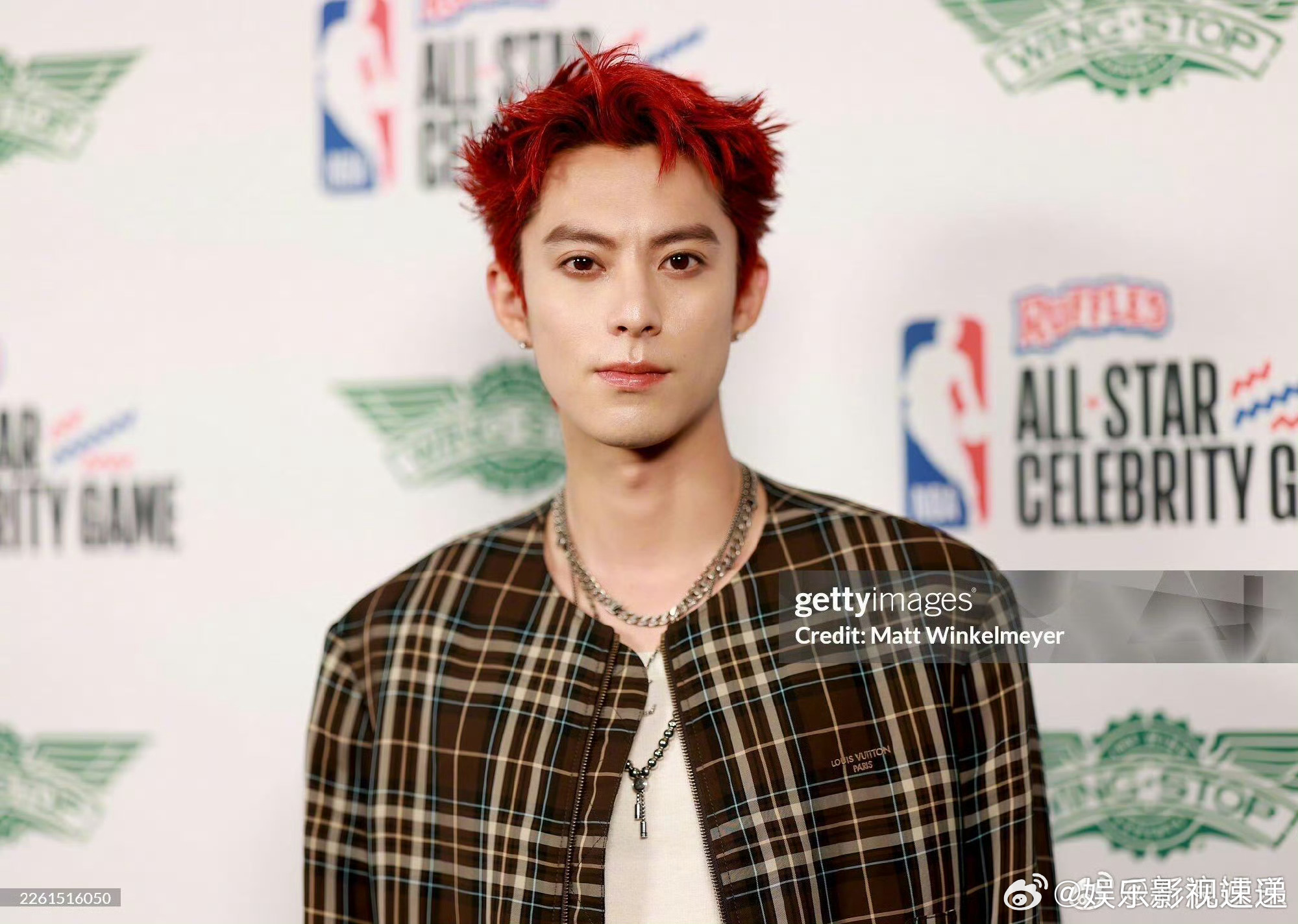 王鹤棣在NBA宣传星河入梦 看到王鹤棣红发现身NBA赛场那一刻,就知道这波稳了,拿着星河入梦扇子宣传的样子太敬业,和Cortis的联动也很惊喜。