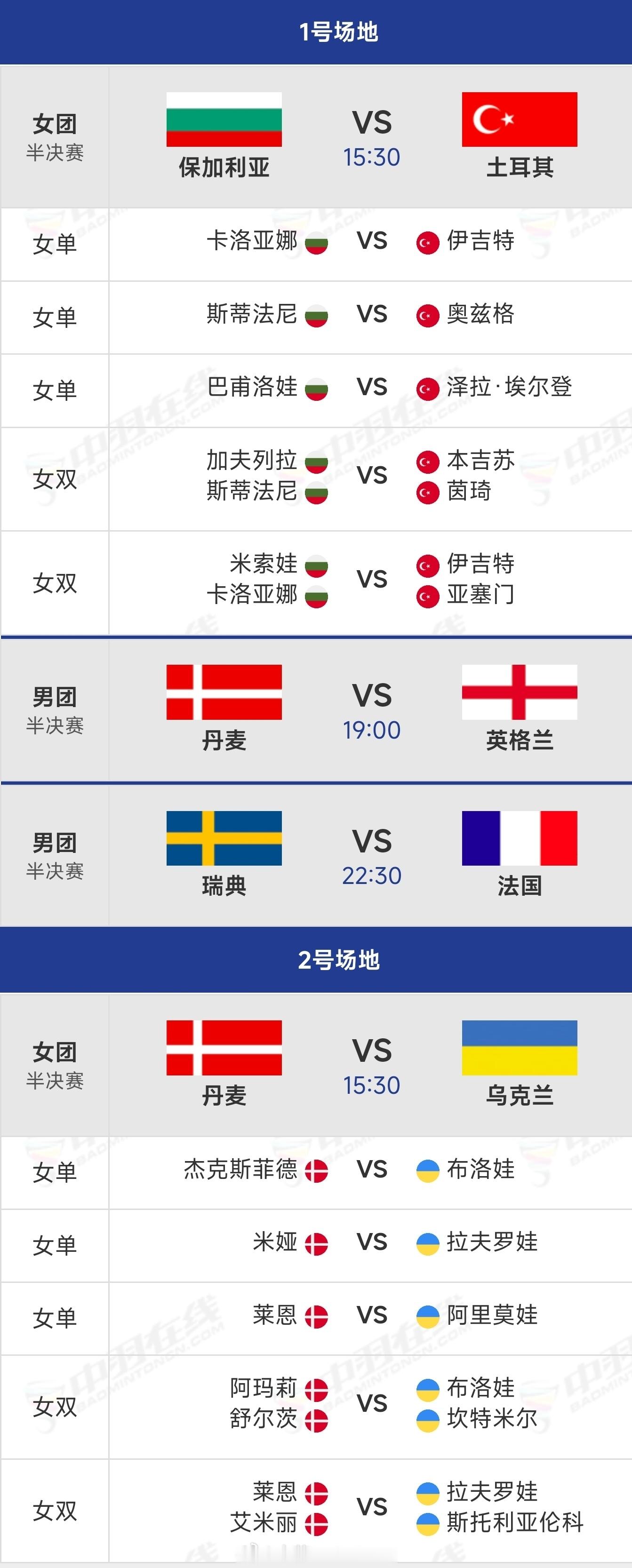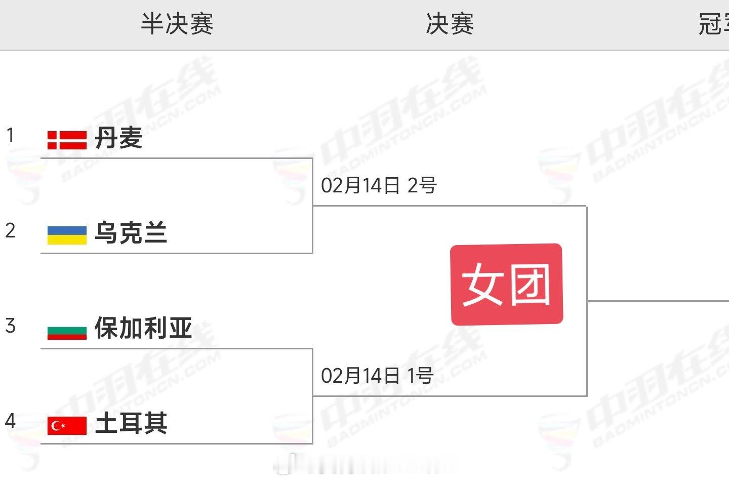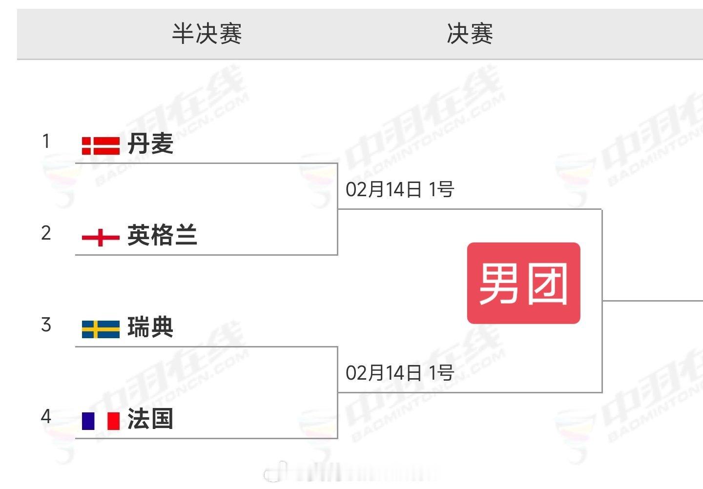2026年欧洲羽毛球团体锦标赛四强对阵出炉