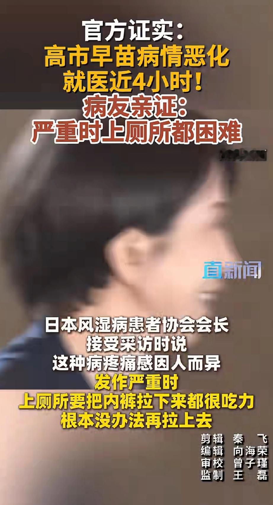 重磅消息啊,高市早苗身体出现身体出现重大问题,病情恶化,现在严重的连上厕所都困难,上厕所连内裤拉下来都很吃力,内裤根本拉不上去。