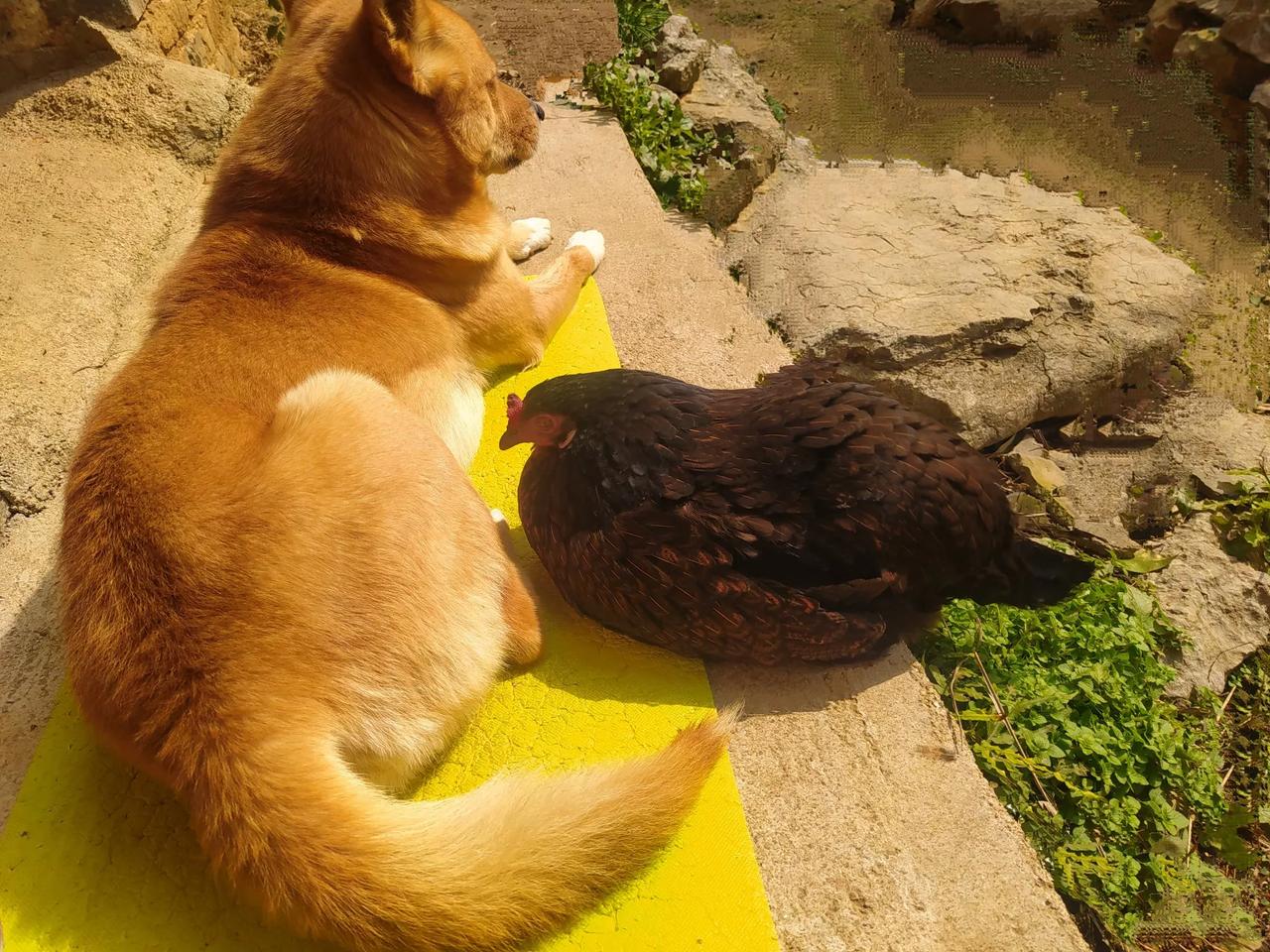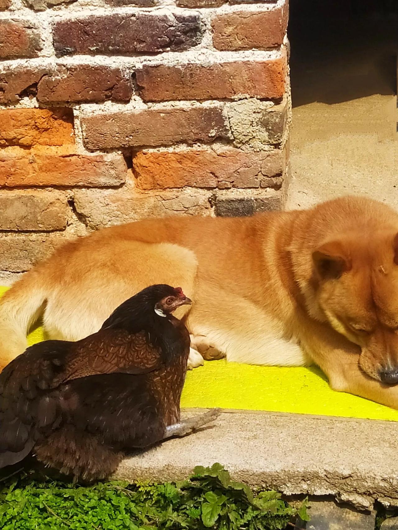 老祖宗严选的田园犬真的很神奇啊,它们的神奇,不在于它们有多忠诚、多护主、和多会看家 而在于,它们真的什么都懂 我养的几只田园犬,只要是家里养的小动物,它们都是能做到很包容的 比如家里的母鸡小黑,不仅能随意霸占它们的狗窝,还能跟它们挤在一块垫子上晒太阳 甚至还能从它们的狗碗里抢食,哪怕是抢了它们最爱吃的肉肉和骨头 哪怕蹬鼻子上脸给它们啄上两口,它们也能做到心平气和、不咬不赶,而只是习惯性的后退两步,不吭声 或许,它们本能的就知道,家里所有的小生命,都是主人养着的,都是家庭里的一员,是应该包容,是不能咬的 有时候,我蹲下来摸摸它们的头,它们不会说话,但会把下巴搁在我膝盖上,头稍稍仰着凝视我,像是在说:我懂,我什么都懂,这院子里的一切,都是你喜欢的,你喜欢的,我们替你守护着……