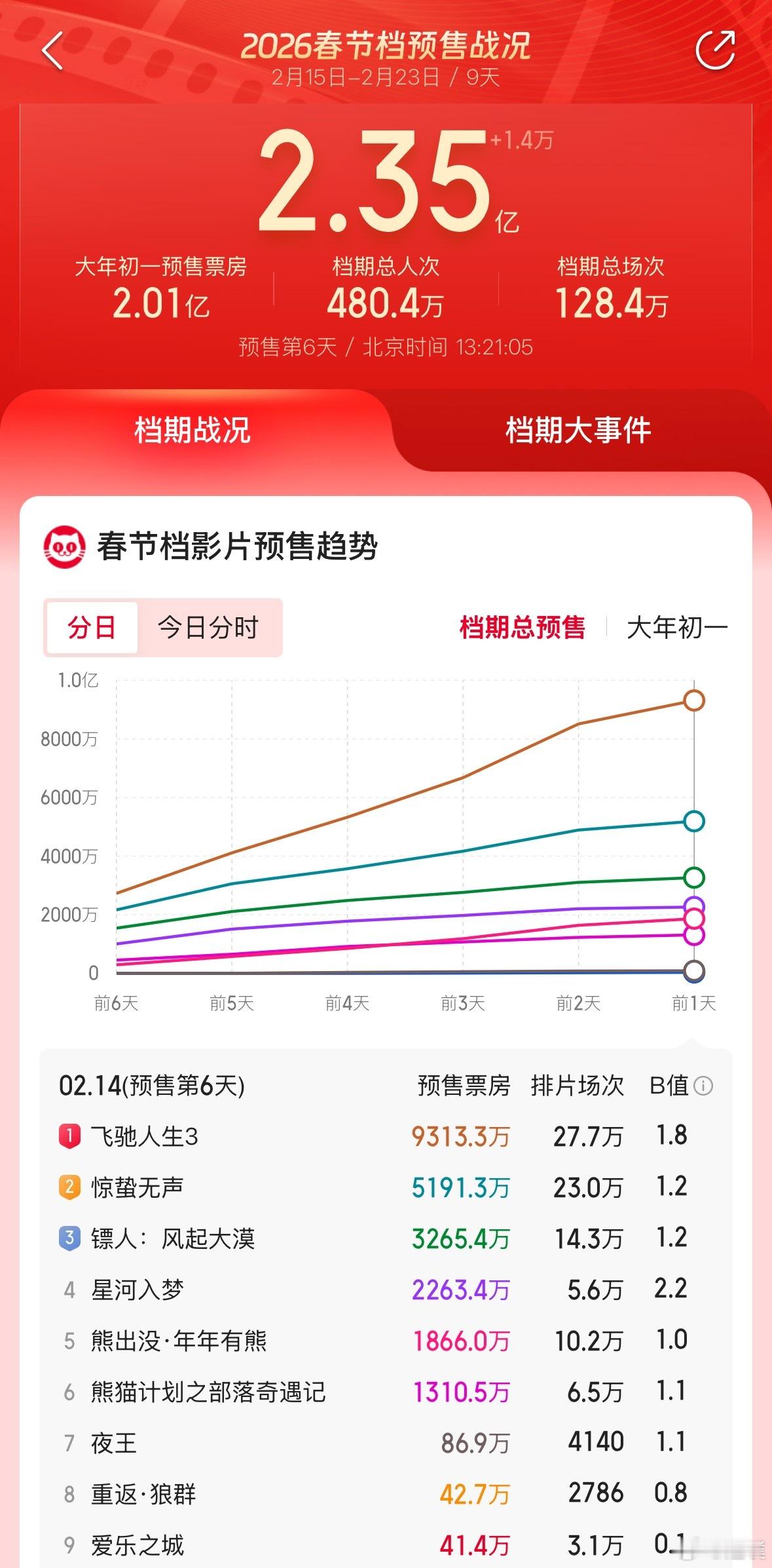目前预售票房前三是飞驰人生3、惊蛰无声、镖人,按照目前的趋势来看,今年春节档票房第一很有可能是飞驰人生3。