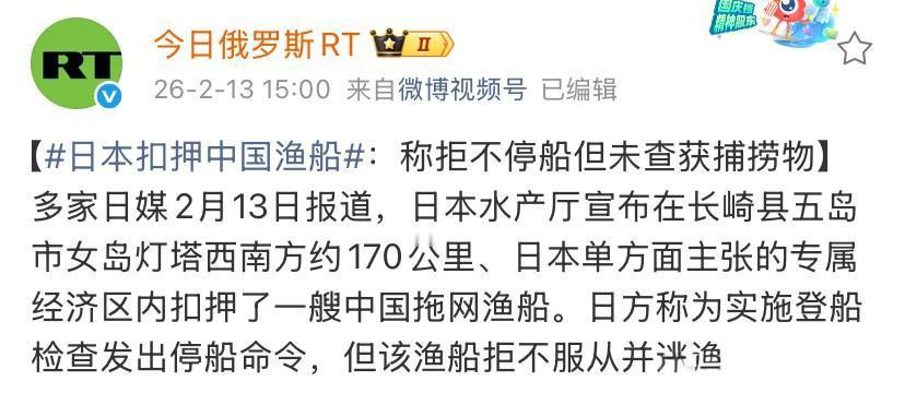 扣押渔船内空无一物,日本依旧不依不饶, 日本政府:以后还要接着干! 2月13日,根据今日俄罗斯引援日本媒体报道,被日方扣押的中国渔船,经过查证之后,船舱里面未有捕捞物。 日本内阁官房长官木原稔也在新闻发布会上,就该事件表态,指出他们正在就该事件进行调查。并且强调为了防止和遏制外国渔船的非法作业,今后日本方面将继续以坚决的态度开展取缔活动。 与此同时,为了防止中方采取对等报复,日本海保要求日本渔协会通知下属渔民,尽量避免前往钓鱼岛附近进行捕鱼。 评几句:这一前一后的反差,直接戳破了日本的色厉内荏——他们心里比谁都清楚,自己的行为完全站不住脚,纯粹是故意制造事端,真要硬碰硬,他们根本没那个底气承担后果!! 说起日本无故刁难、非法扣押中国渔船的恶行,这些年可谓是屡见不鲜,桩桩件件都透着霸权与无理。 最让人刻骨铭心的,就是2010年钓鱼岛海域的詹其雄船长事件。当时詹其雄驾驶“闽晋渔5179”号渔船,在钓鱼岛附近传统渔场正常作业,日本海上保安厅不仅恶意撞击渔船,还强行登船非法扣押船长长达17天。 日方同样用所谓“国内法”当借口,无视钓鱼岛是中国固有领土的事实,无视中方的严正抗议,妄图用羁押施压逼迫中国渔民低头。 最终在中方全方位强力反制、举国上下同声抗议的情况下,日方才不得不灰溜溜放人。那 一次我们就看清,日本从来不是真的维护什么渔业规则,而是借着渔业纠纷,不断试探中国底线,蚕食中国海洋权益,把打压中国渔民当成彰显所谓“海洋主权”的手段。 还有2012年年底,日本又以“偷捕珊瑚”为借口,在鹿儿岛附近海域非法扣押中国渔船、逮捕船长,即便中方多次交涉、拿出合规作业的证据,日方依旧一意孤行,搞恶意审判、强行罚款。 这些年来,日本一直搞双重标准,对本国渔船越界作业、违规捕捞的行为视而不见,唯独对中国渔民鸡蛋里挑骨头,哪怕查不出任何问题,也要想方设法刁难一番。 他们单方面划定所谓“专属经济区”,无视1997年《中日渔业协定》里协商解决纠纷的约定,跳过双边沟通机制,直接动用强制力量扣船抓人,把单边强权凌驾于国际规则之上,把中国渔民的合法生计当成随意践踏的对象。 再看这次空船被扣事件,日本的操作更是突破底线。 船舱里没有任何捕捞物,就意味着日方所谓“非法作业”的指控完全不成立,这是最直白、最无法抵赖的事实。 可日本依旧选择无视,还要放话“以后接着干”,本质上就是借题发挥,配合岛内右翼势力和外部势力,在东海、钓鱼岛问题上煽风点火,制造地区紧张局势。 春节将近,咱们的渔民出海打拼,无非是想多赚点钱、过个好年,日本偏偏选在这个时间点动手,就是故意添堵、故意制造矛盾,把政治私利凌驾于普通民众的生计之上,其用心之险恶,昭然若揭。 日本口口声声标榜自己是“法治国家”,可在这件事上,连最基本的“以事实为依据”都做不到,空船扣人、无据执法,把司法和执法当成政治挑衅的工具,这就是对法治精神的最大践踏。 他们让自家渔民躲避的操作,更是坐实了“做贼心虚”,知道自己的行为不得人心,知道中国的反制会让他们付出代价,所以只能偷偷摸摸搞避险,这种又狂又怂的样子,只会让国际社会看清他们的虚伪面目。 最后必须正告日本方面:立刻停止这种无事生非的挑衅行为,立刻无条件释放中国船长和渔船,不要再拿中国渔民当政治工具,不要再试探中国维护主权和权益的决心。 中国维护国家主权和公民权益的意志坚定不移,对等反制的手段也早已准备就绪。如 果日本非要一条道走到黑,继续在海上玩火,最终必然会搬起石头砸自己的脚,为自己的无理行径付出应有的代价! 中国人不好惹,中国渔民更不是好欺负的,这一点,日本必须牢牢记在心里!