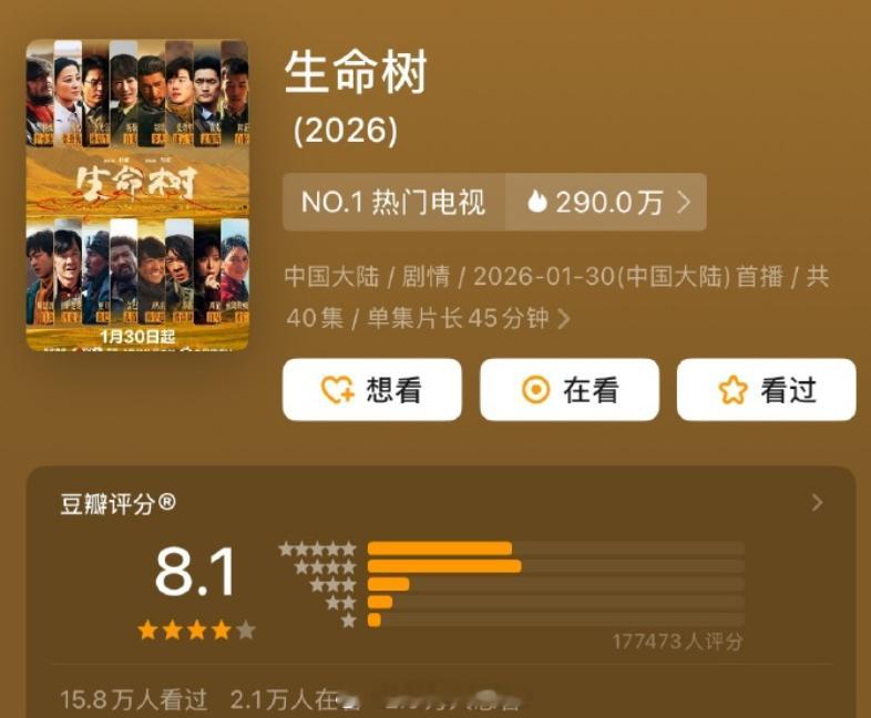 杨紫胡歌生命树豆瓣开分8.1看了吗?感觉高了低了?