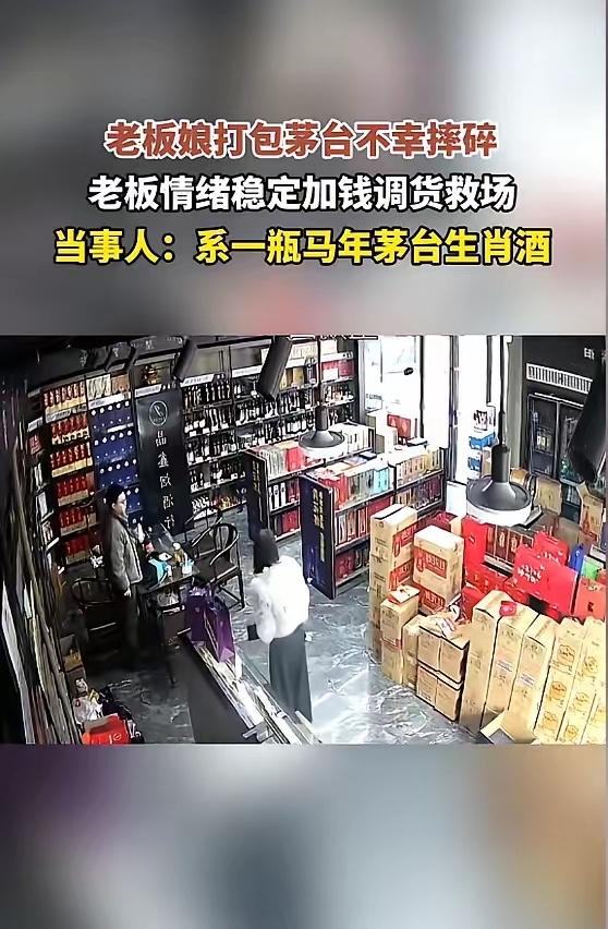 2月12日,四川内江,一女子给客户装2400余元的茅台时,不小心将酒瓶摔碎,女子