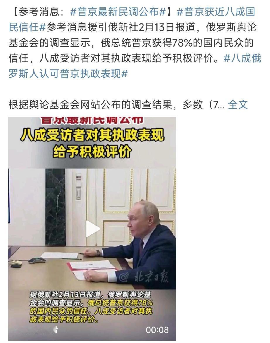 四年仗没白打! 俄罗斯人现在对普京支持率高达78%,如果继续打下去极可能超过这一支持率: 普京的强大可圈可点,不仅将最大对手美国几乎拉进了俄罗斯阵营,而且又向特朗普开出了一个极具诱惑力的12万亿大单,只要特朗普在,俄罗斯就会把欧洲国家压得喘不过气来! 结果乌克兰没垮,欧洲先垮了。