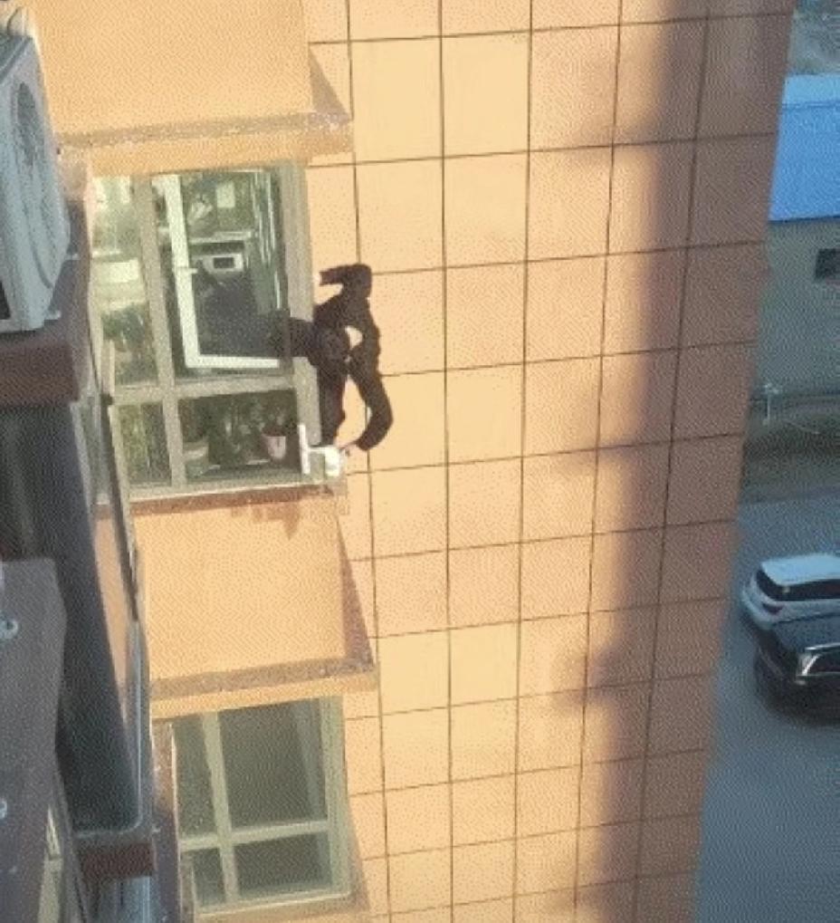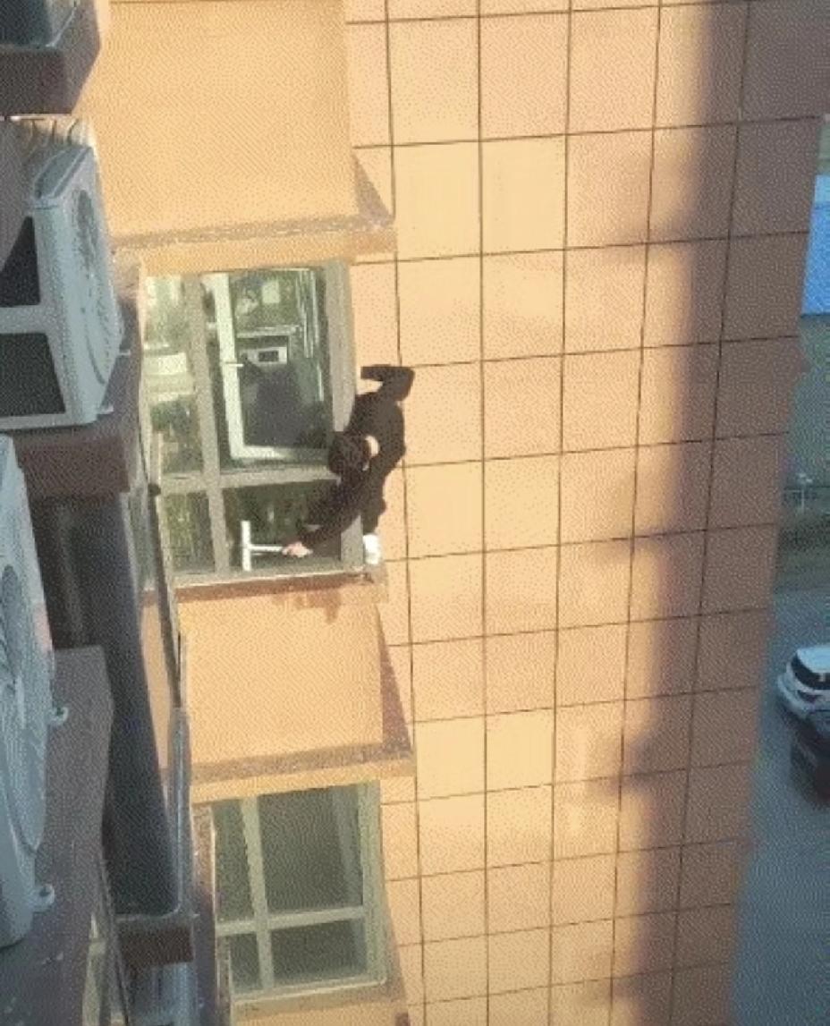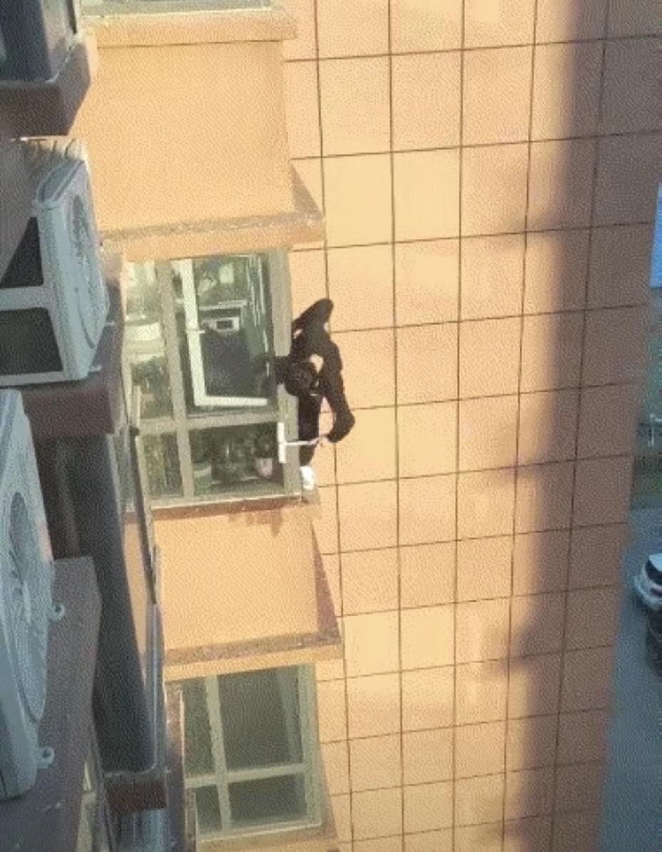 这哥们,看得我心惊肉跳,人直接趴在窗外擦玻璃,这种真的有必要擦吗?