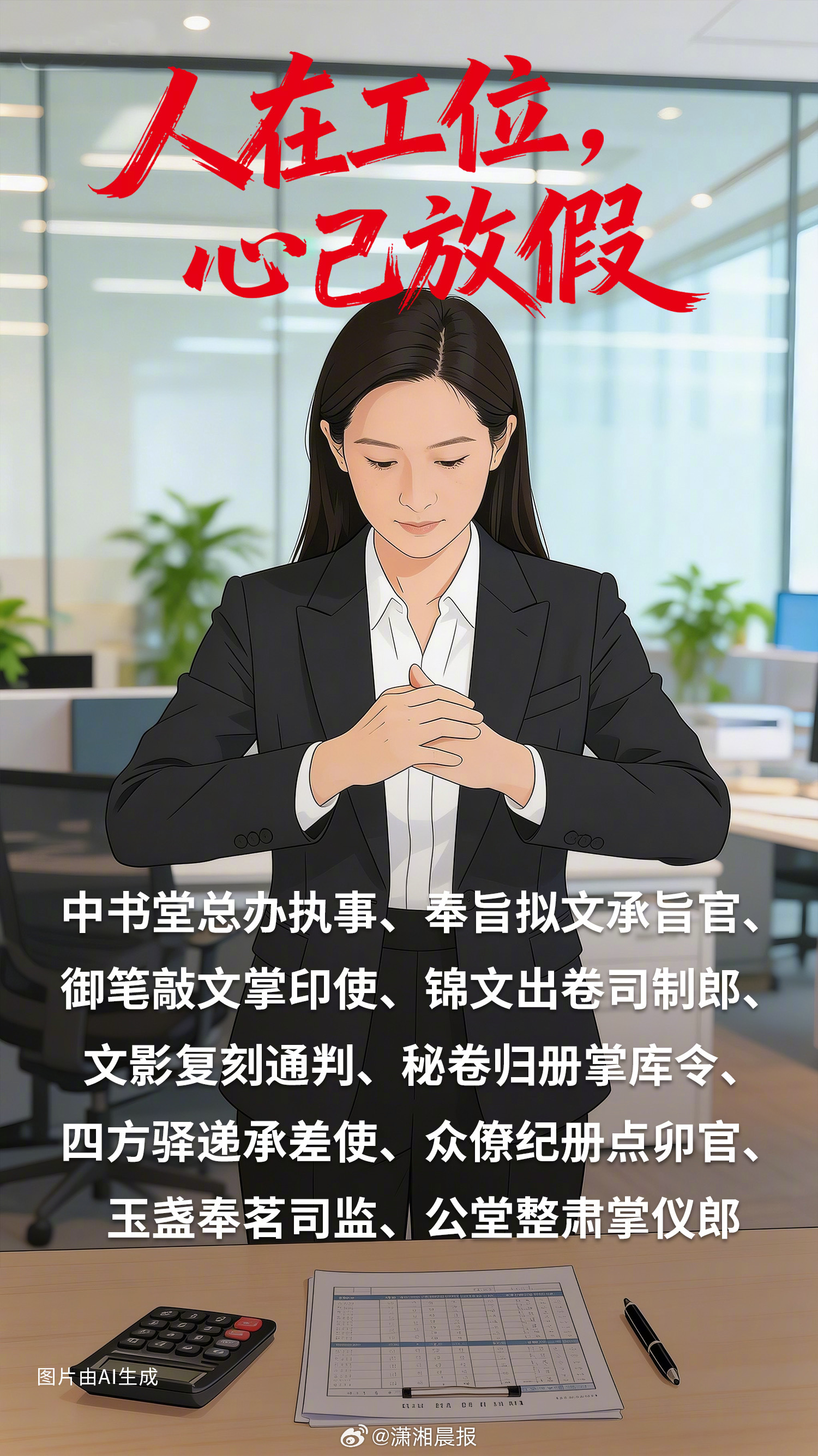 【春节前最后一个工作日,#假如我在太平年上班#】近期,电视剧《太平年》热播,剧中五代吴越国那一串又长又细、气势拉满的官职头衔,让人印象深刻。我们以剧中官职体例为灵感,把身边最常见的职业——财务、厨师、保安等,一一“仿古复刻”,用趣味漫画还原当代人的真实日常,既有古风仪式感,又满是生活烟火气。