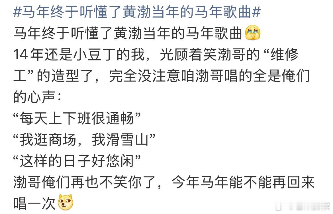 马年终于听懂了黄渤当年的马年歌曲我也是那会一直觉得怎么就穿个工作服来了结果现在越