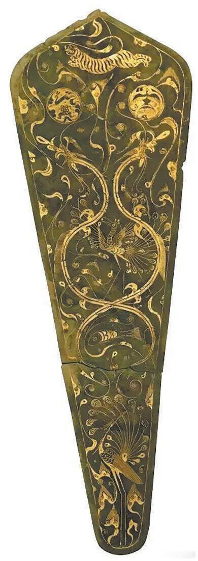 马年说马汉初文物里的“天马”情节 海昏侯墓出土的478件、总重115公斤黄金器物。这些金器中有48件形似马蹄,名为褭(音“鸟”)蹏(音“蹄”)金,其名称源自汉武帝太始二年(公元前95年)的诏书,因敦煌渥洼水出“天马”这一祥瑞事件而铸造,意为“天马蹄”。饰以金丝掐成的纹饰,并嵌有琉璃片。褭蹏金分大小两种,分别刻有“上”“中”“下”字样。褭蹏金这种特殊的金币仅流行于西汉中期,其概念与形制均来源于汉武帝的“天马”情结。