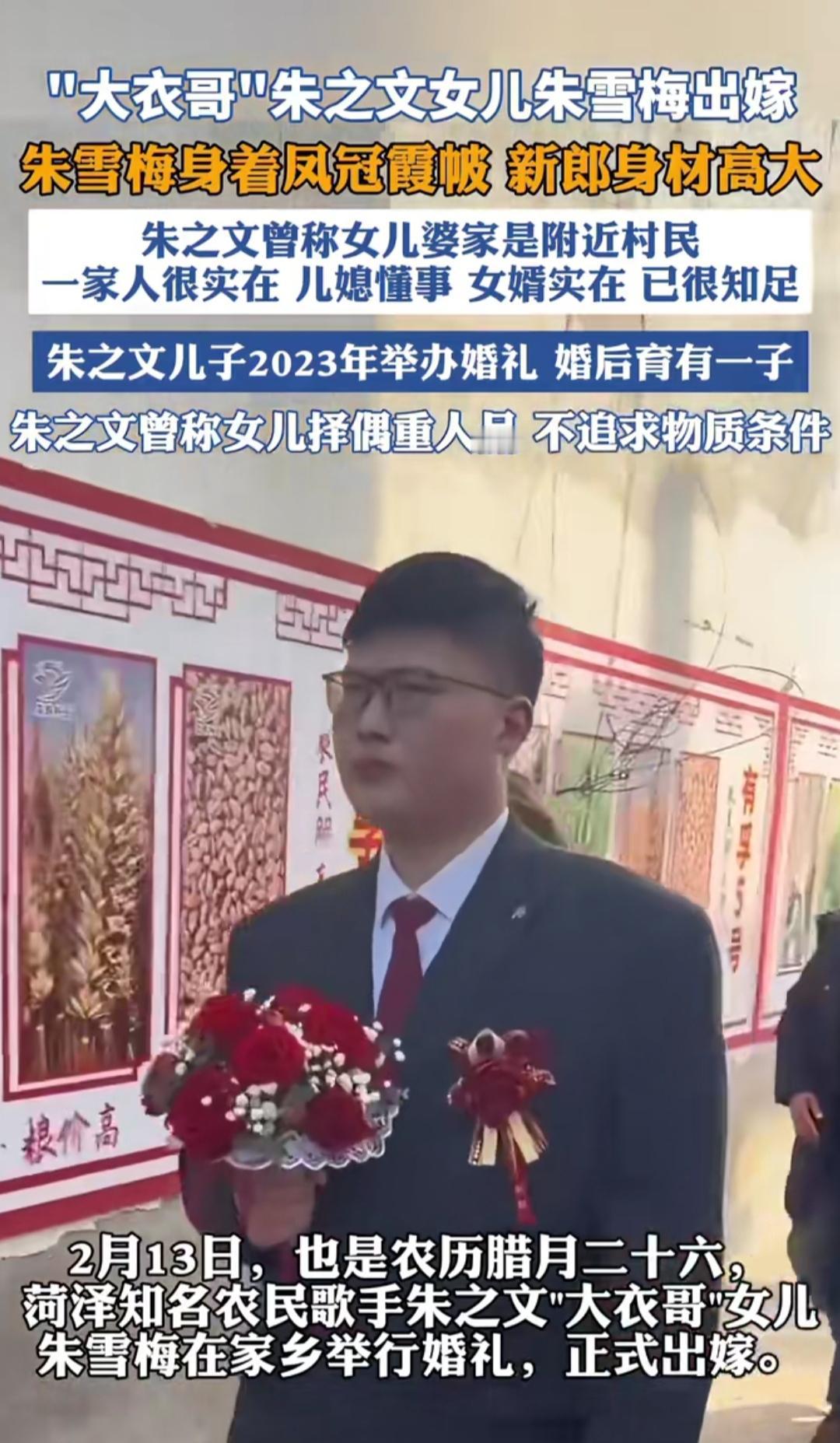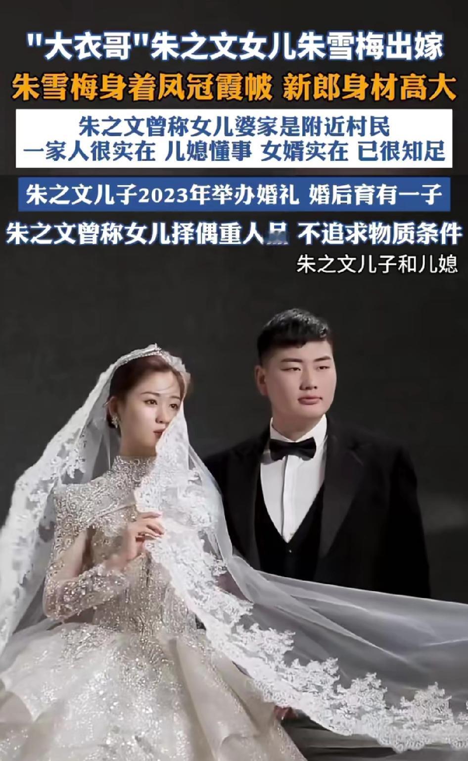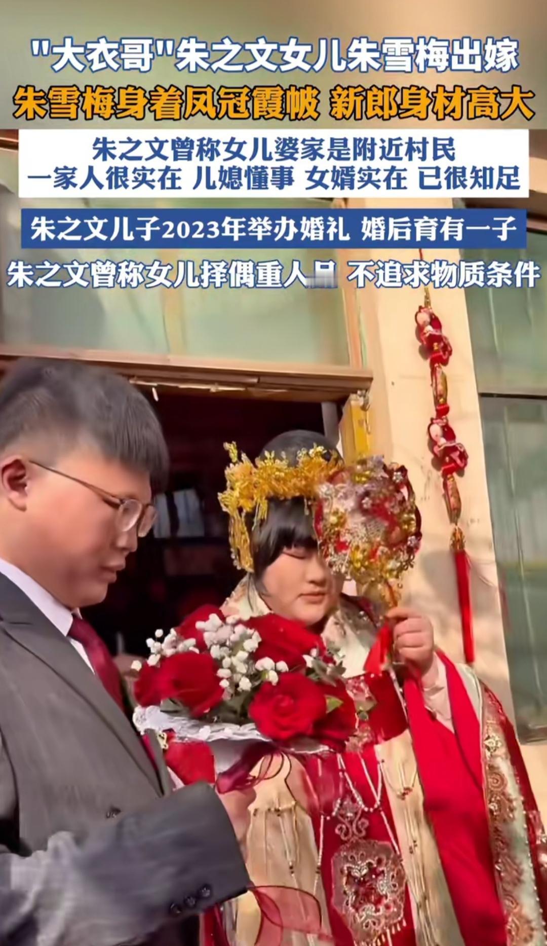 谁能想到大衣哥嫁女儿,愣是把一场婚礼办出了全网热议的热度!朱雪梅出嫁没有奢华排场,没有鼓乐喧天,农家小院里的简单仪式,反倒比那些大操大办的婚礼更让人关注。 大衣哥的择婿标准果然藏着人间清醒,不看家境不问钱财,就挑人品靠谱的,邻村普通小伙入了眼,不仅拒收彩礼,还婉拒百万转播赞助,把所有心思都放在女儿的踏实日子上。这份偏爱,藏在丰厚的嫁妆里,房、车、创业资金样样备齐。 朱雪梅也曾因身材被网络暴力,为婚礼减肥却反弹,可出嫁时身着中式婚服的她,眼里满是幸福。新郎腼腆朴实,打破了富二代的网传谣言,两人站在一起的般配模样,比任何外在条件都更动人。 同样是儿女婚事,儿子的高调波折对比女儿的低调温馨,大衣哥的用心全在细节里。没有明星助阵,没有专业策划,农家小院的婚礼,藏着最实在的祝福,也藏着普通人对幸福最纯粹的期待。