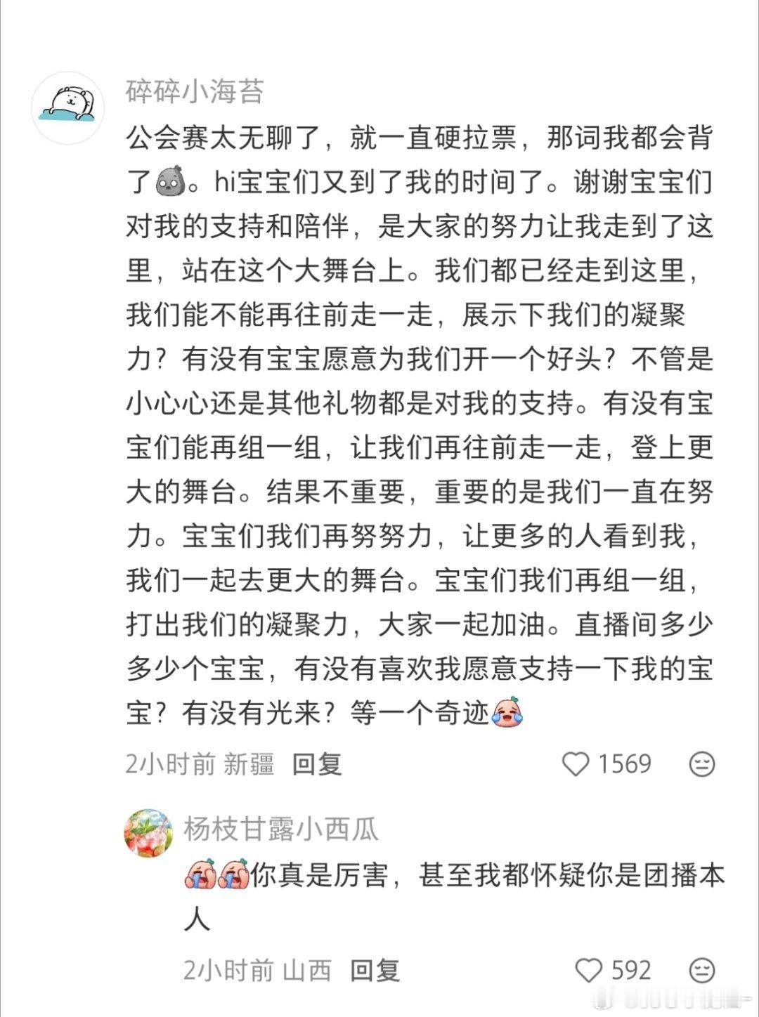 现在团播也不行了,流量下降,拉票都是一套说辞