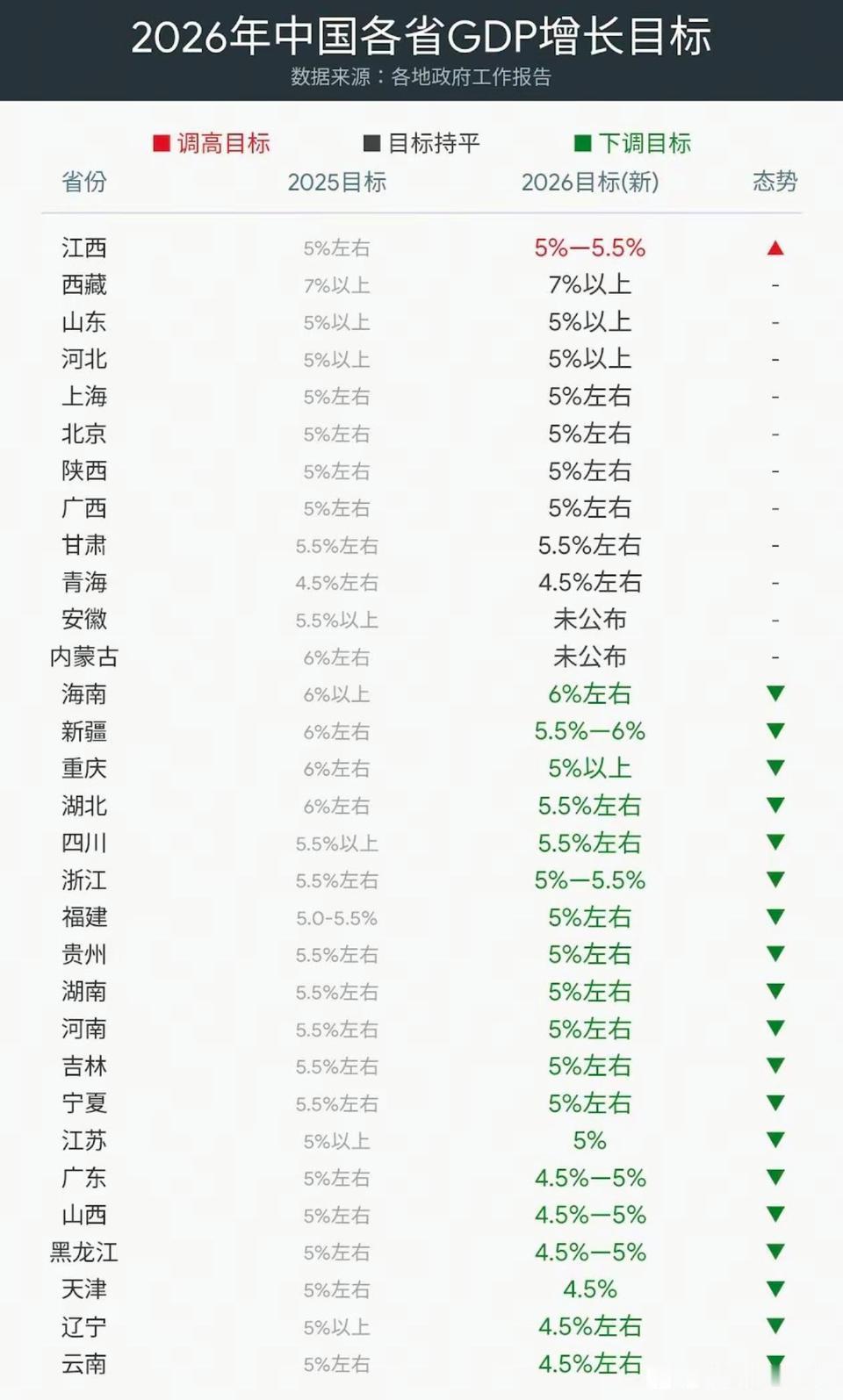 唯一上调5%-5.5%!江西2026开局领跑全国 2026年是江西爆发元年,开年一月便强势突围。江西成为全国唯一上调经济增速目标的省份,GDP增速由5%左右上调至5%—5.5%,规上工业增加值目标7.3%以上,彰显强劲发展底气。这一调整立足产业升级与项目攻坚,年度计划投资超1.1万亿元,以新质生产力驱动高质量发展。江西以敢为人先的姿态,在中部崛起中勇立潮头,为全国经济稳增长注入赣鄱力量,书写逆势上扬的发展新篇章。