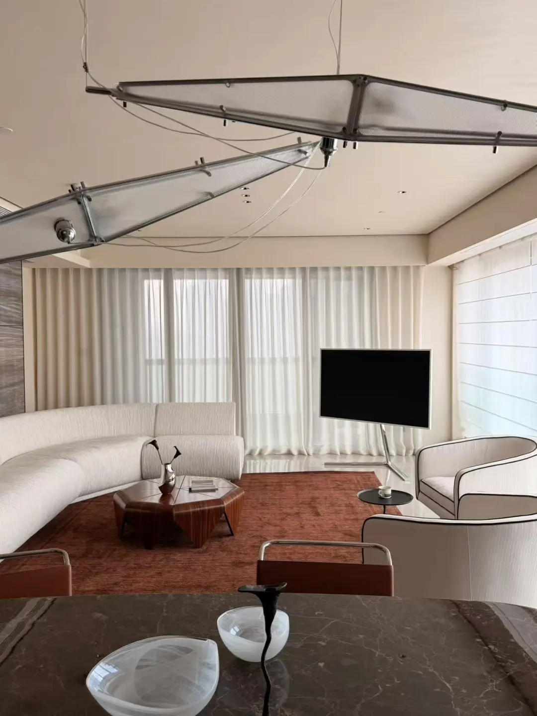 让这个大平层既有极简的利落,又有艺术的温度。