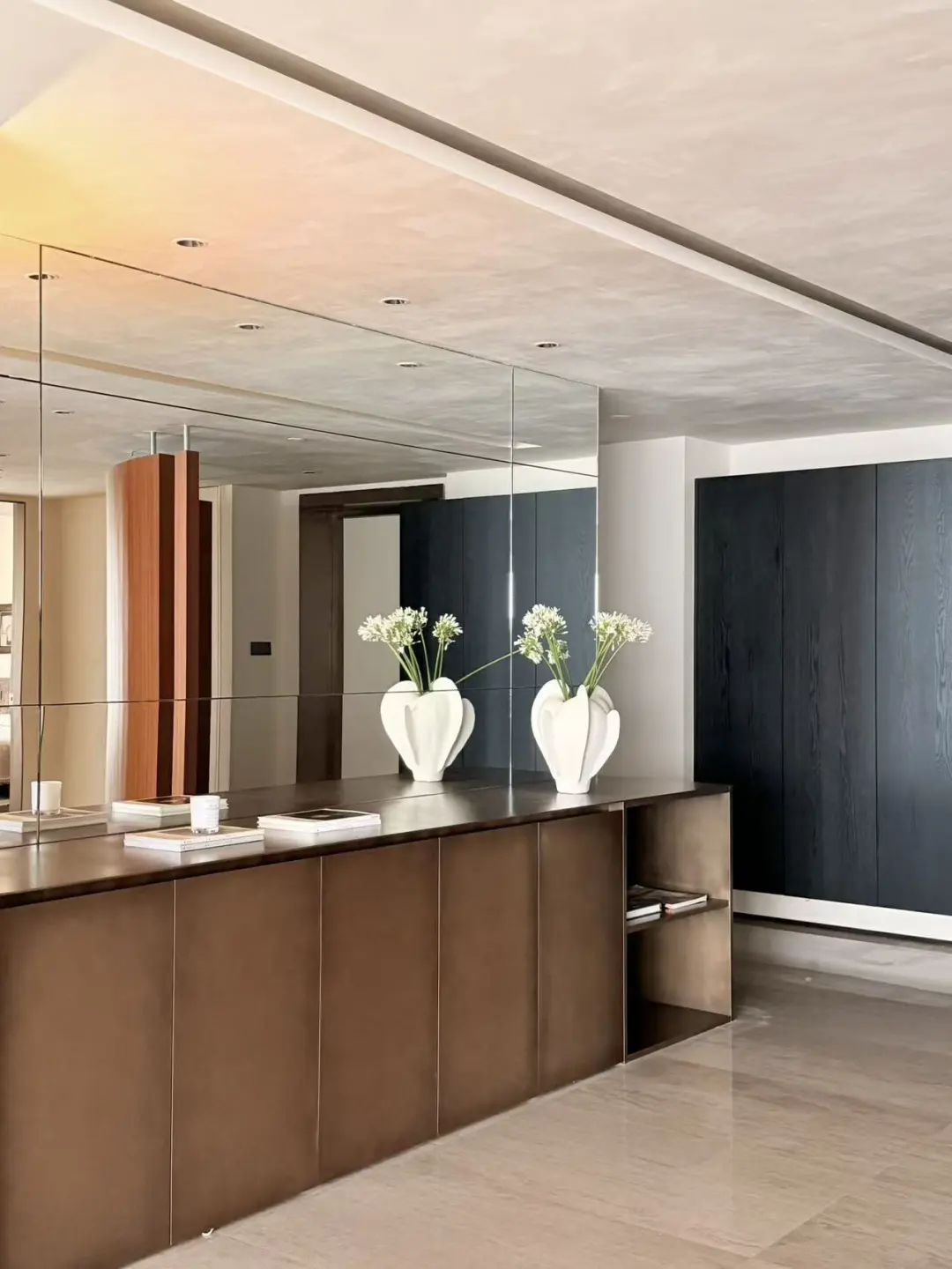 我们保留了部分精装房的硬装,但材质和软装重新定义了空间气质,