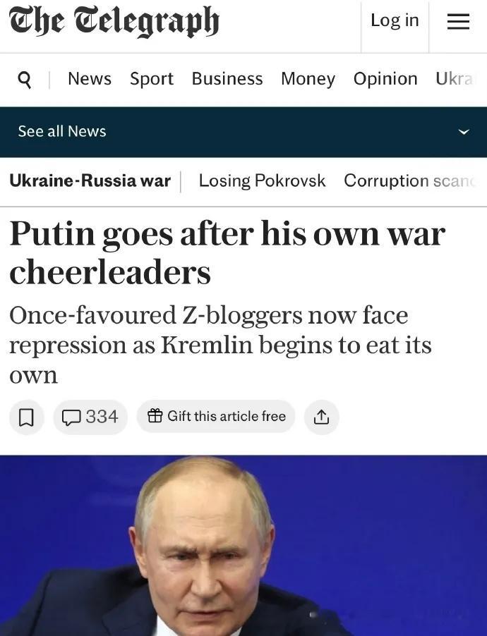 烽火问鼎计划 《每日电讯报》报道称,克宫正在打击自己的“战争啦啦队”,库尔斯克州长顾问、支持“特别军事行动”的Z博主、功勋士兵罗曼·阿列欣因炫耀自己的新跑车和名表而被贴上了“外国代理人”的名单,这表明即便是忠于克里姆林宫的批评了也不再安全了。