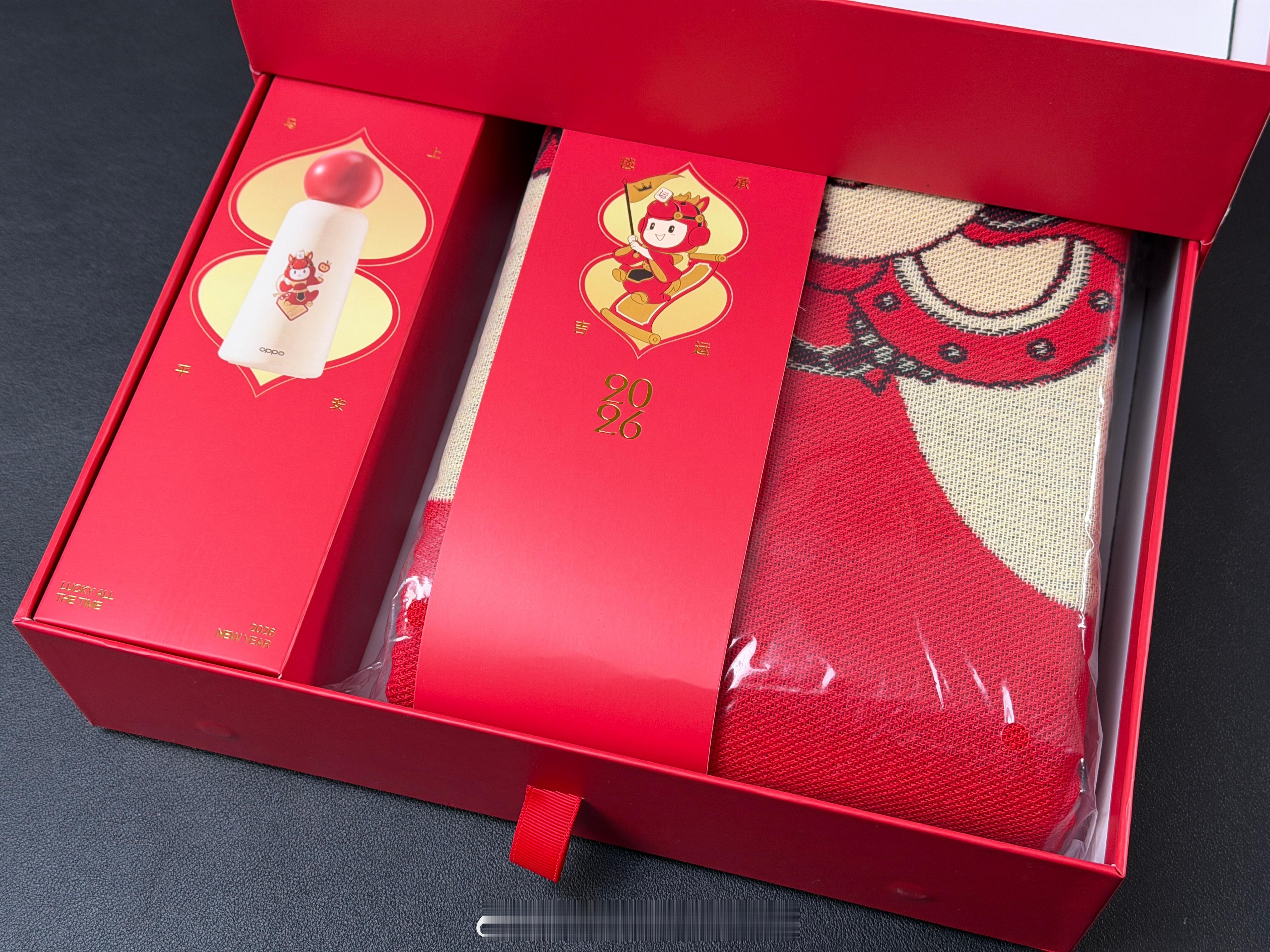 感谢OPPO的时来运转礼盒,内容真的很丰富,马欧定制红包,木鱼,金贴包挂,大富翁游戏,保温杯,毛毯,还有小欧马年摆件,新的一年祝大家马到成功马年春晚