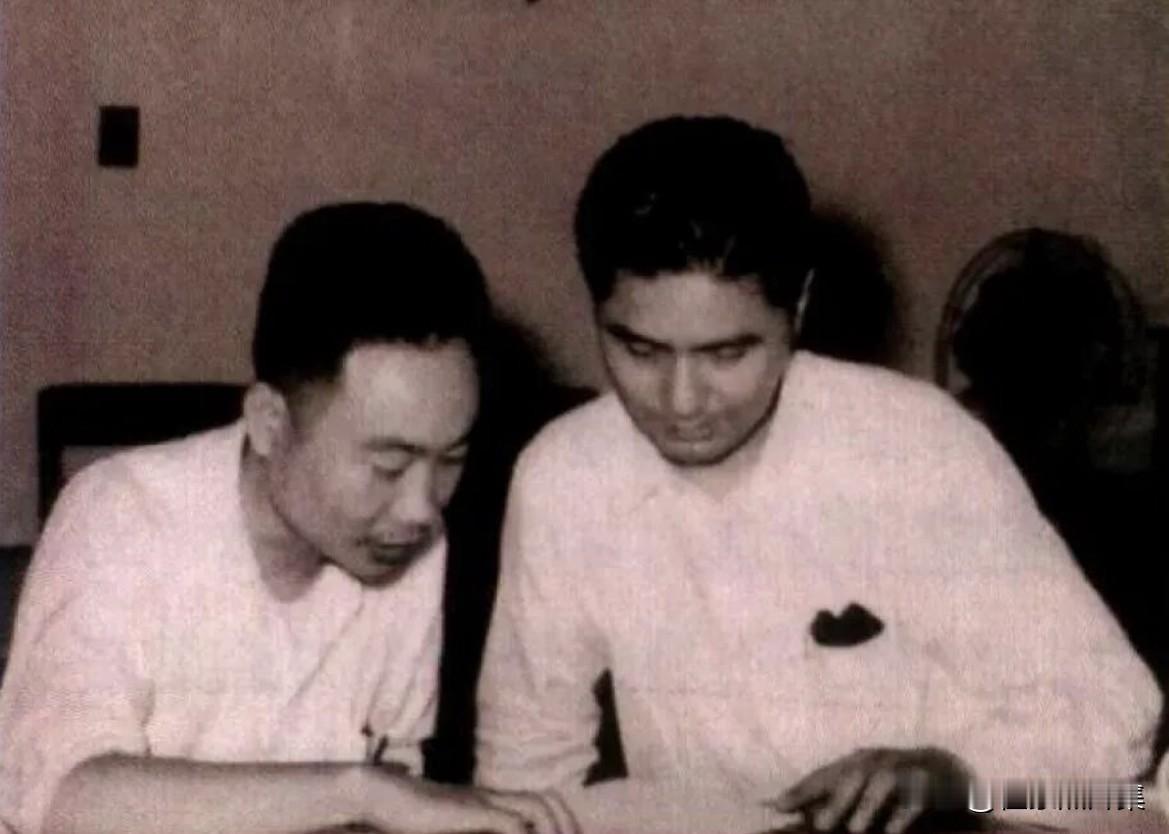 1955年,上海申新纺织公司公私合营后,荣毅仁(右)与公方代表在一起商讨企业发展大计。当时,公方代表(通常由政府委派干部担任)的入驻,标志着企业所有权和管理模式发生了根本性变化,从私营转变为国家资本主义的高级形式,当时政策是“公私兼顾、劳资两利”。合营激发了职工积极性,企业面貌焕然一新。1956年1月,毛泽东视察申新九厂时间及生产情况,荣毅仁回答:“比以前要好。”