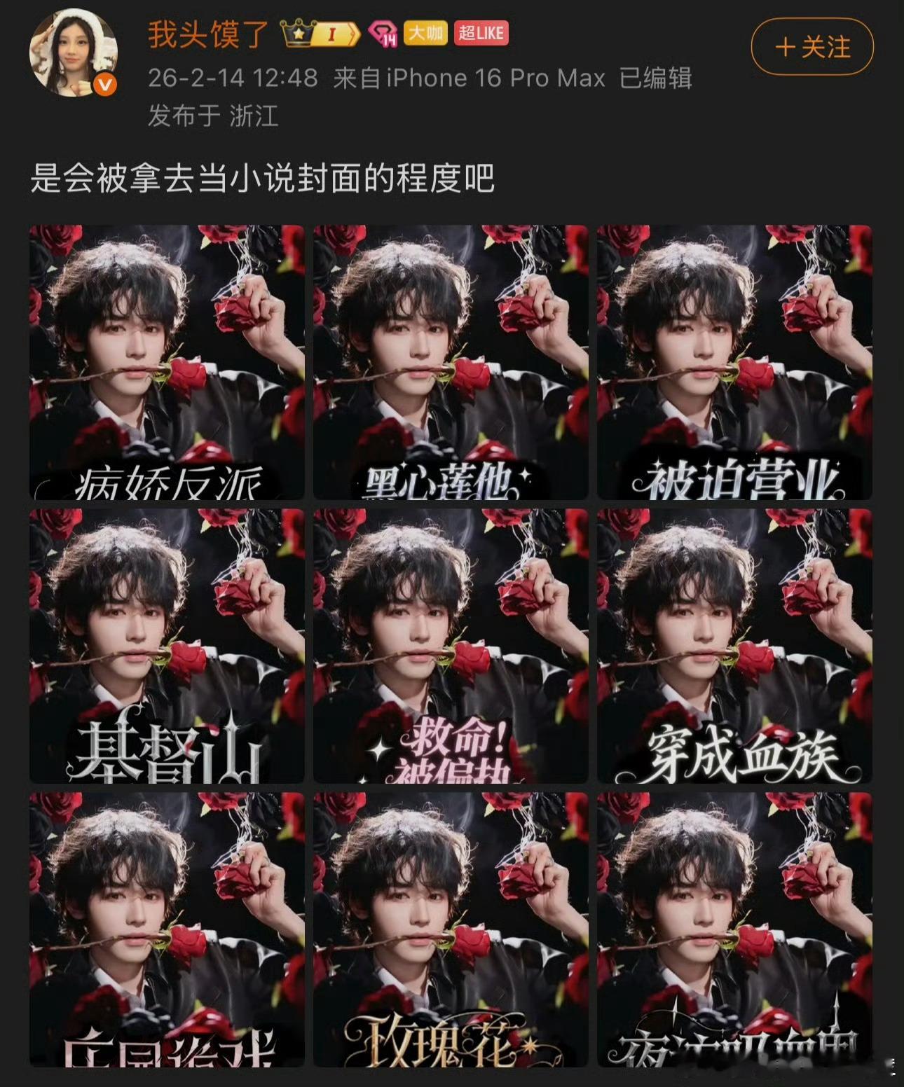 宋亚轩玫瑰大片小说封面适配度宋亚轩玫瑰大片小说封面既视感粉丝太有才了!把宋亚轩情人节玫瑰大片改成小说封面,病娇反派攻略计划、黑心莲会蛊惑人心、被迫营业当万人迷,书名和氛围感直接拉满,跪求网文大佬速速开文!