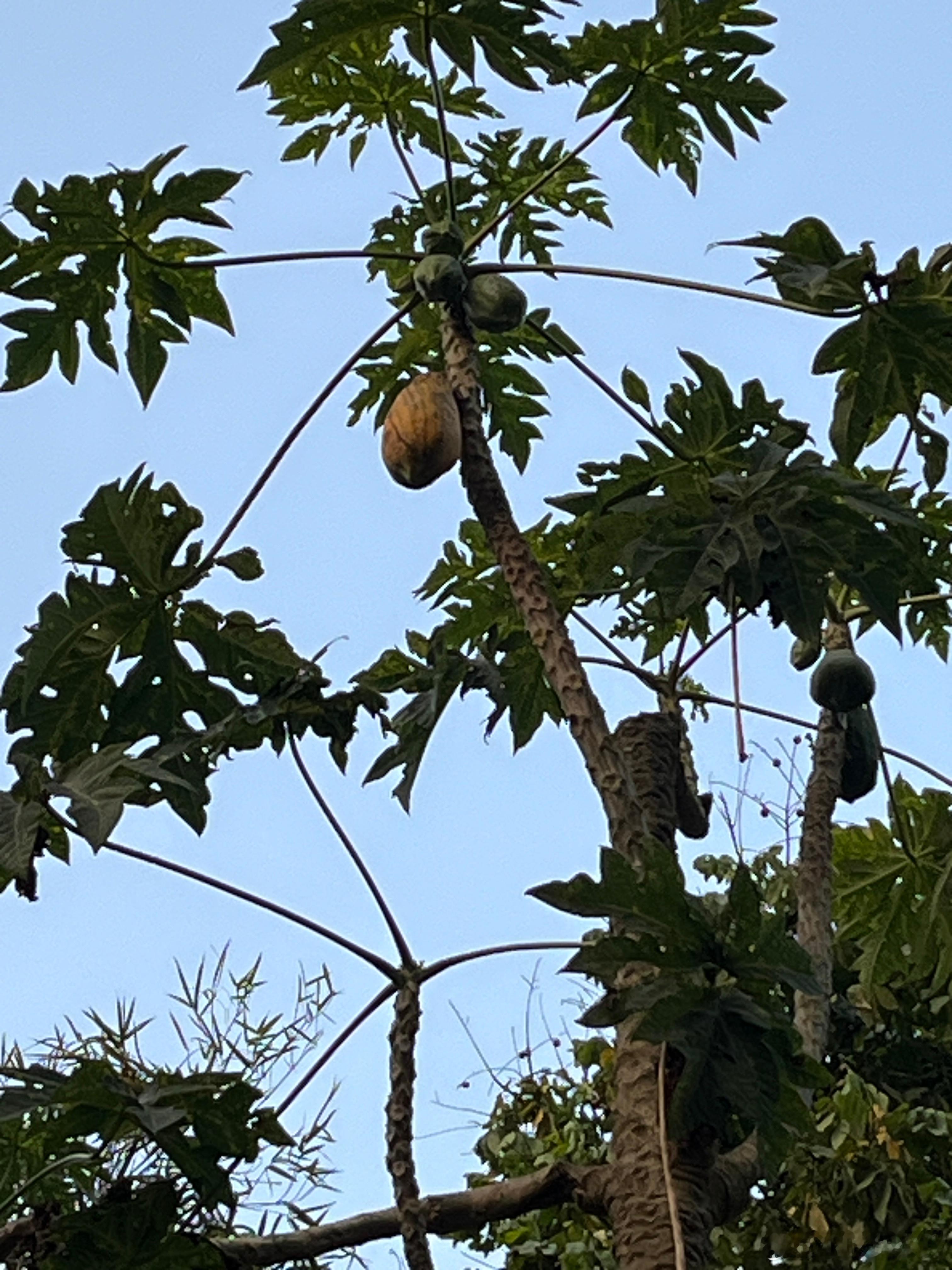 我哥说树上有个熟的木瓜,叫我来接住,我怎么接得住,20米高,现在的木瓜也很厉害,以前只长2.3米高而已,现在是10几米起步。