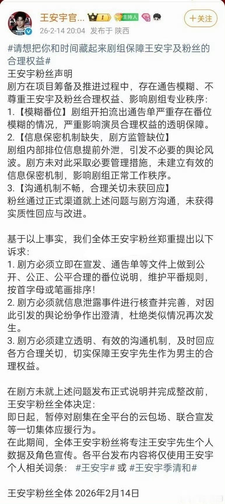 王安宇后援会都出来了,要求想把你和时间藏起来维护平番规则其实正式官宣就知道了,一般通告单不会写这些的