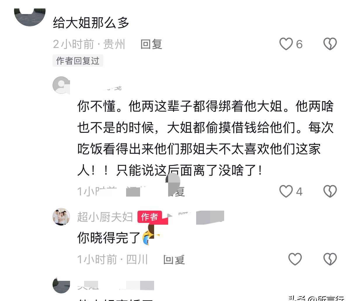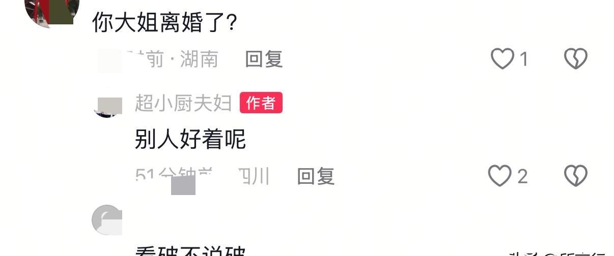 标题:大姐夫春节同框出镜,离婚谣言自然消散 【事实切入】 2月9日,超小厨晒年夜饭视频,大姐杨翠花与丈夫并肩包饺子。 【语境还原】 时间:2025年2月 地点:云南昭通超小厨老家 主体:杨翠花夫妇、超小厨全家 【多维分析】 维度1·平台机制:短视频“缺席即危机”的围观惯性,使短暂不露面被放大为婚姻破裂信号。 维度2·家庭分工:大姐负责线下米线店早班,姐夫凌晨备货,直播时段错开,降低同框频率,形成信息真空。 【观点提炼】 公共讨论需克制“缺席审判”冲动,把镜头外的日常还给当事人,才是对普通家庭最体面的尊重。