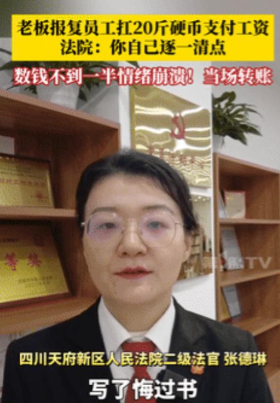 “这个法官你火了。”四川,老板拖欠8000元工资败诉,却想用20斤1毛硬币羞辱员工。不料,法官的一句话让老板崩溃了,她说:“你先自己清点一下数目对不对。”结局大快人心。网友:这好办,我看都不看就说少了,你自己证明一下。 最近四川成都一起劳动纠纷案件,刷爆了全网,网友们清一色点赞法官,直呼“太解气”“就该这么治”。事情说起来不复杂,就是一场8000元工资的纠纷,但老板败诉后的操作,属实刷新了大家的认知,而法官的应对,更是一句话直击要害,让嚣张的老板瞬间破防。 打工的人都懂,出来挣钱图的就是踏实,付出多少力气,就该拿到多少报酬,没什么比辛苦干活后拿不到工资更让人寒心的。 这起案件里的员工,跟着老板干了一段时间,按理说离职或者到结算日,老板就该足额结清工资,可这位老板却一拖再拖,从一开始的找借口搪塞,到后来干脆避而不见,任凭员工怎么联系都不回应。 员工没办法,总不能白白付出劳动,无奈之下只能拿起法律武器维权,把老板告上了法庭。法院经过审理,证据确凿,老板拖欠工资的事实一目了然,最终判决老板败诉,限期支付拖欠员工的8000元工资。 本以为事情到这里就结束了,员工能顺利拿到属于自己的辛苦钱,可谁也没想到,这位老板不仅不服气,还动起了歪心思,想靠耍小聪明羞辱员工,发泄自己的怨气。 判决生效后,老板没有像正常人一样转账,也没有拿现金,反而特意凑了20斤1毛的硬币,装在一个大袋子里,拎着就去了法院,一副有恃无恐的样子。 他当着法官和员工的面说,自己没钱,就只有这些硬币,要就要,不要就算了,还故意刁难,要求员工当场把这些硬币一个个清点清楚,少一枚都不行。 明眼人都能看出来,他不是真的拿不出钱,就是想故意折腾员工,用这种方式找回自己败诉的面子,甚至想逼员工主动放弃,以此逃避支付工资的义务。 更让人不齿的是,后来经过法官核实,这些硬币根本不是老板所说的“多年积蓄”,全都是2024年的新版硬币,明显是他特意从银行兑换来的,就是为了刁难人、羞辱人。 员工看着满满一袋的硬币,又气又无奈,气的是老板的格局太小,输了官司还输不起,无奈的是这些硬币确实是法定货币,自己还不能拒收,一时间不知道该怎么办。 就在老板得意洋洋,以为自己的计谋能得逞的时候,承办案件的法官却一脸严肃地开口了,没有多余的指责,就一句话,直接让老板的笑容僵在了脸上,最后彻底崩溃。法官看着他,平静地说:“你先自己清点一下数目对不对,确认够8000元了,再交给员工。”这句话看似简单,却直接戳中了老板的要害。 大家可以算一笔账,1毛硬币一枚重约1.15克,20斤就是10000克,大概有8696枚,算下来也就869.6元,离8000元还差得远,老板本来就是故意凑的硬币想刁难,根本没算清楚数目,更别说凑够8000元了。 而且20斤的硬币,一个个清点下来,不仅耗时耗力,更是对他自己的一种惩罚,他本来想折腾员工,没想到最后被法官一句话,把难题又抛回了自己身上。一开始老板还硬撑着,蹲在地上慢慢清点,可没数多久,就浑身不耐烦,越数越烦躁,手指都数酸了,也才数了一小部分。 看着剩下的一大堆硬币,再想到自己本来就理亏,还要白白遭这份罪,最后彻底扛不住了,情绪直接崩溃,当场承认了自己的错误,还向法院出具了悔过书。 其实熟悉法律的人都知道,老板这种行为,已经属于故意妨碍执行、恶意履行义务了,我国法律明确规定,拒不履行人民法院已经发生法律效力的判决、裁定,法院可以根据情节轻重予以罚款、拘留,构成犯罪的,还要依法追究刑事责任。 这也是法官敢于直接“回怼”老板的底气,毕竟近年来,国家一直在加大治理欠薪的力度,2020到2024年五年间,全国法院就审结了6200余件拒不支付劳动报酬刑事案件,就是为了切实保障劳动者的合法权益。 最后,老板再也不提用硬币支付的事,当场通过银行转账,把8000元工资足额转给了员工,这场闹剧才算彻底结束,结局可谓是大快人心。 这件事被传到网上后,瞬间引发了网友们的热议,评论区里全是支持法官的声音,还有网友调侃说:“这好办,我看都不看就说少了,你自己证明一下,看他还敢不敢耍小聪明。” 还有不少网友分享了自己遇到的欠薪经历,有人说自己也曾被老板拖欠工资,维权之路走得很艰难,看到这个案例,终于觉得出了一口恶气;也有人说,老板的格局决定了企业的未来,连员工8000元工资都要拖欠,还耍这种小心眼,这样的企业根本走不远。 其实大家都清楚,员工想要的从来不是什么特殊待遇,只是自己应得的劳动报酬,拖欠工资本身就不对,败诉后还想羞辱员工,更是错上加错。 不知道大家有没有遇到过拖欠工资的情况?如果是你,遇到老板用这种方式刁难,你会怎么做?你觉得法官的做法够不够解气?欢迎在评论区留下你的观点,一起讨论。