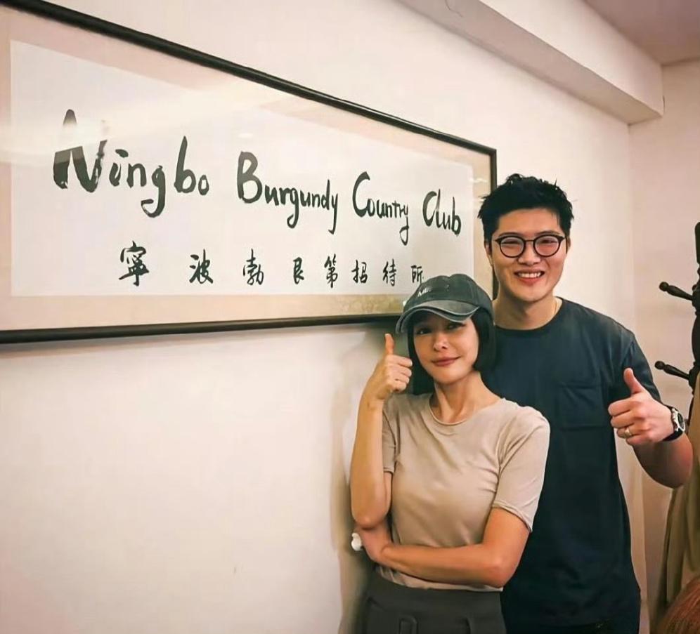 46岁的秦岚在宁波一家餐馆吃饭,和老板一起拍摄合影。她看起来好年轻,身材太好了!