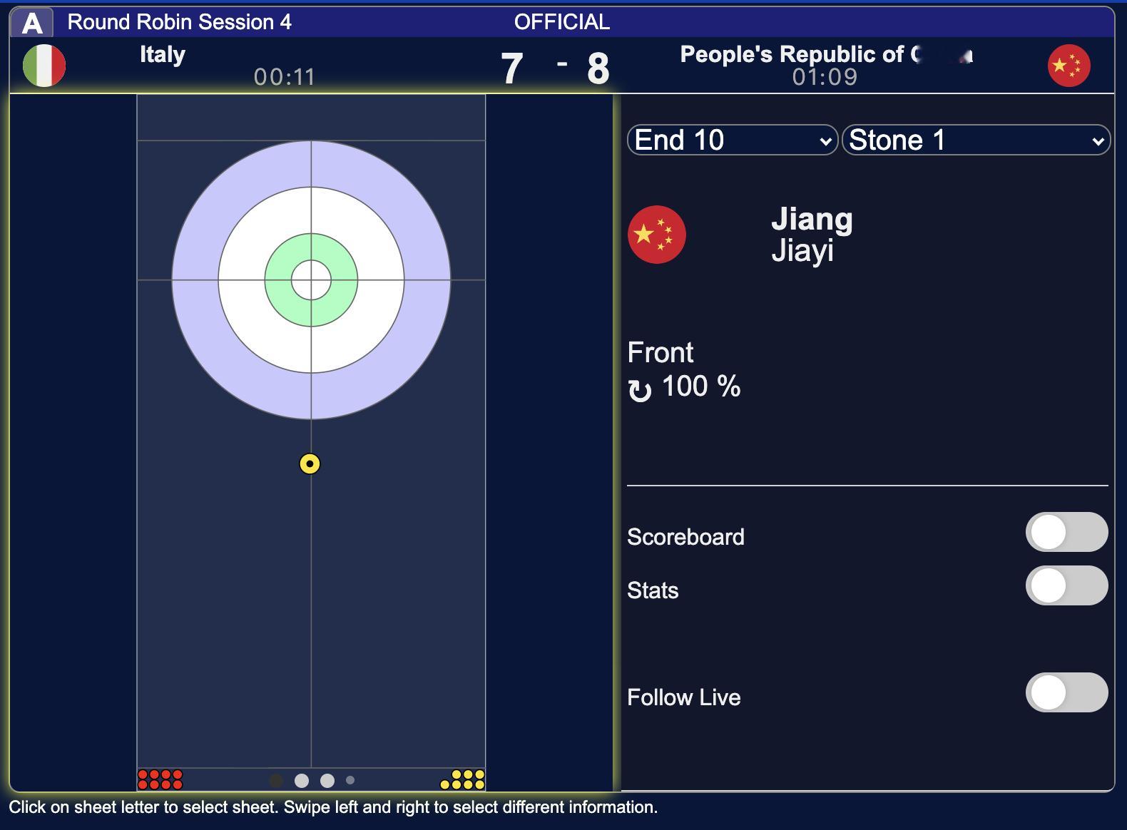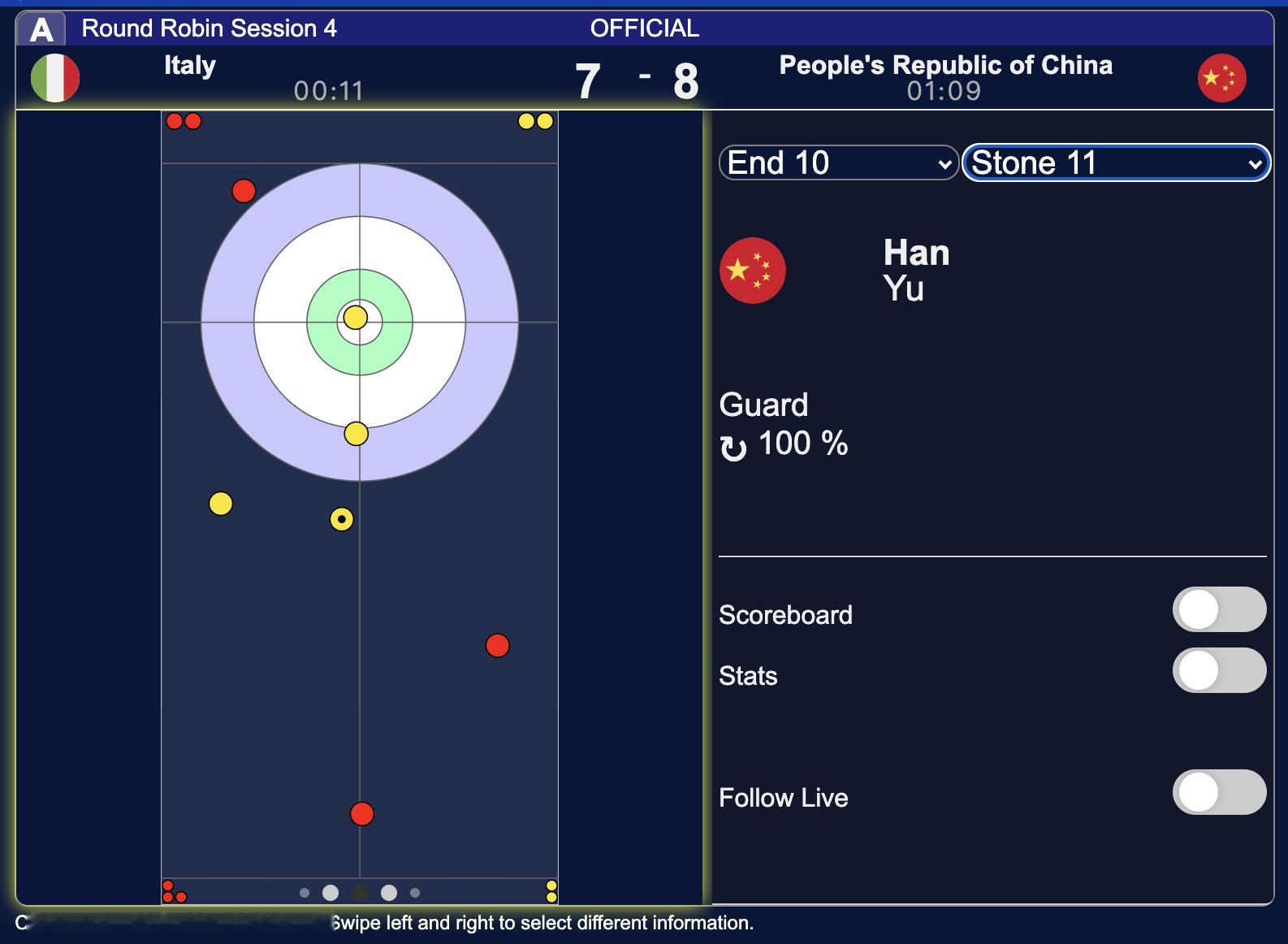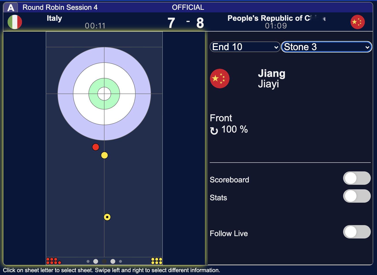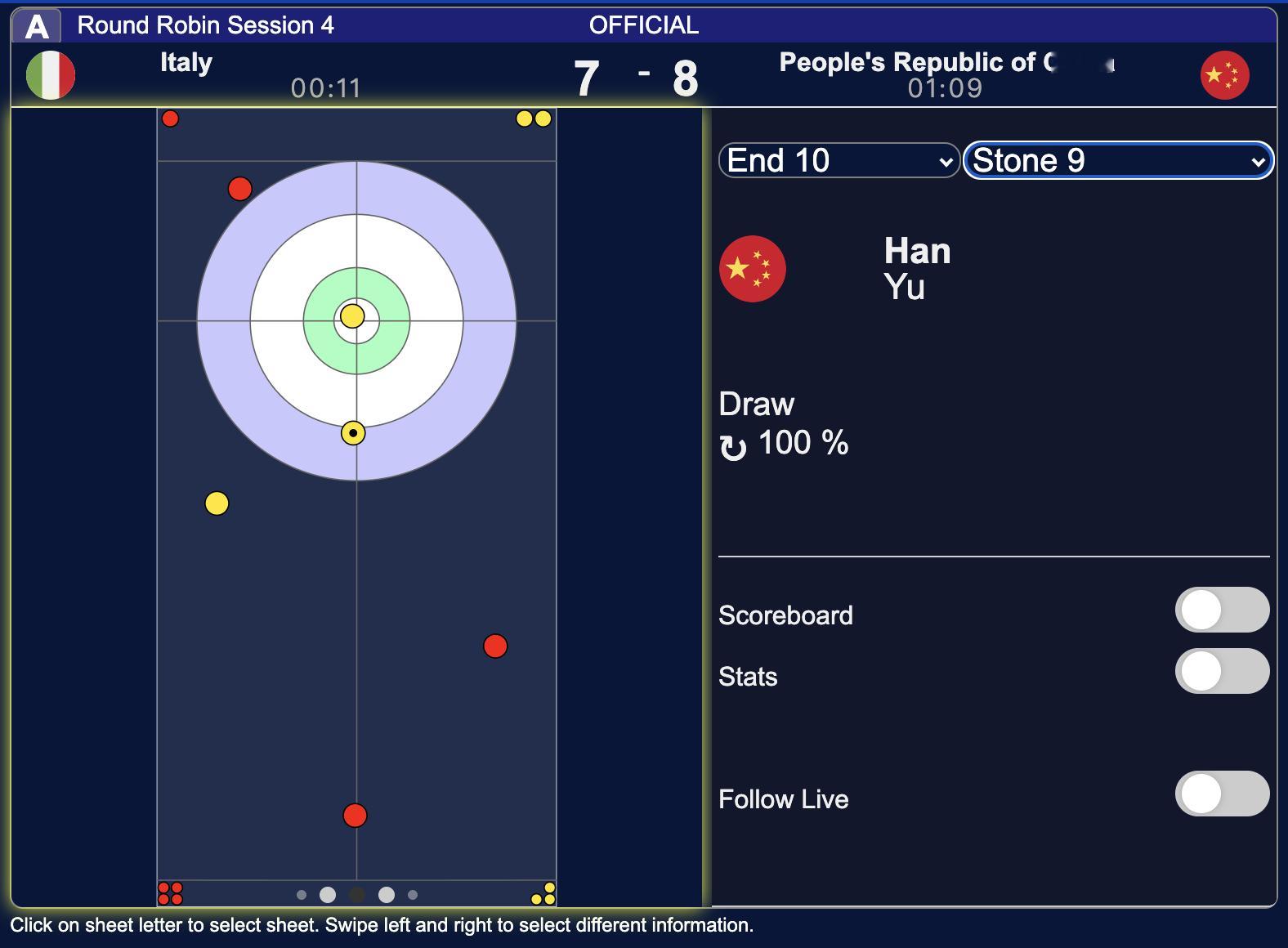 中国女队刚刚最后一局偷分意大利的8投,成功率全部是100%,真是AI遥控冰壶