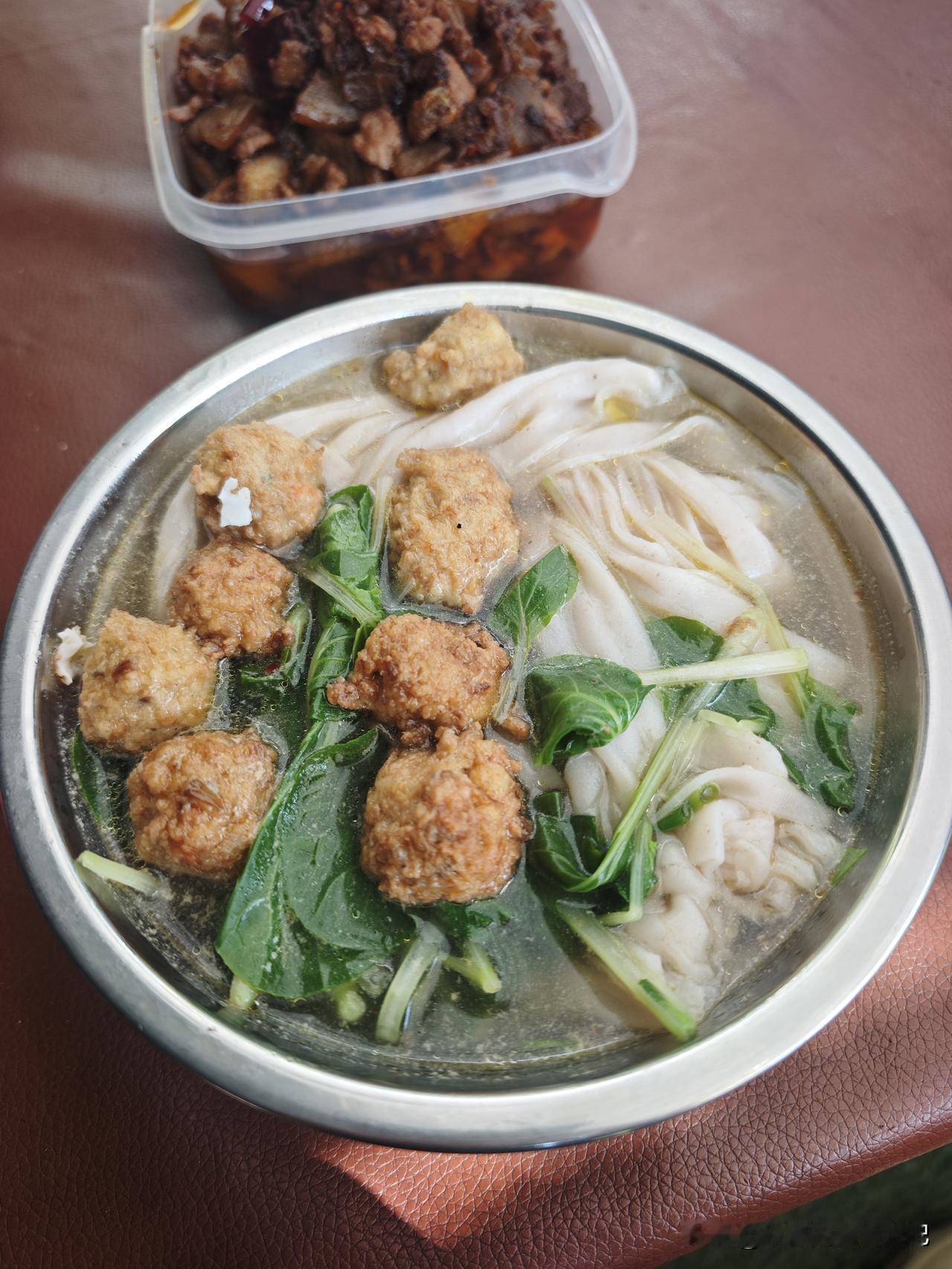 晒图笔记大赛入乡随俗,在来个彼此融合,午饭丸子汤米干...