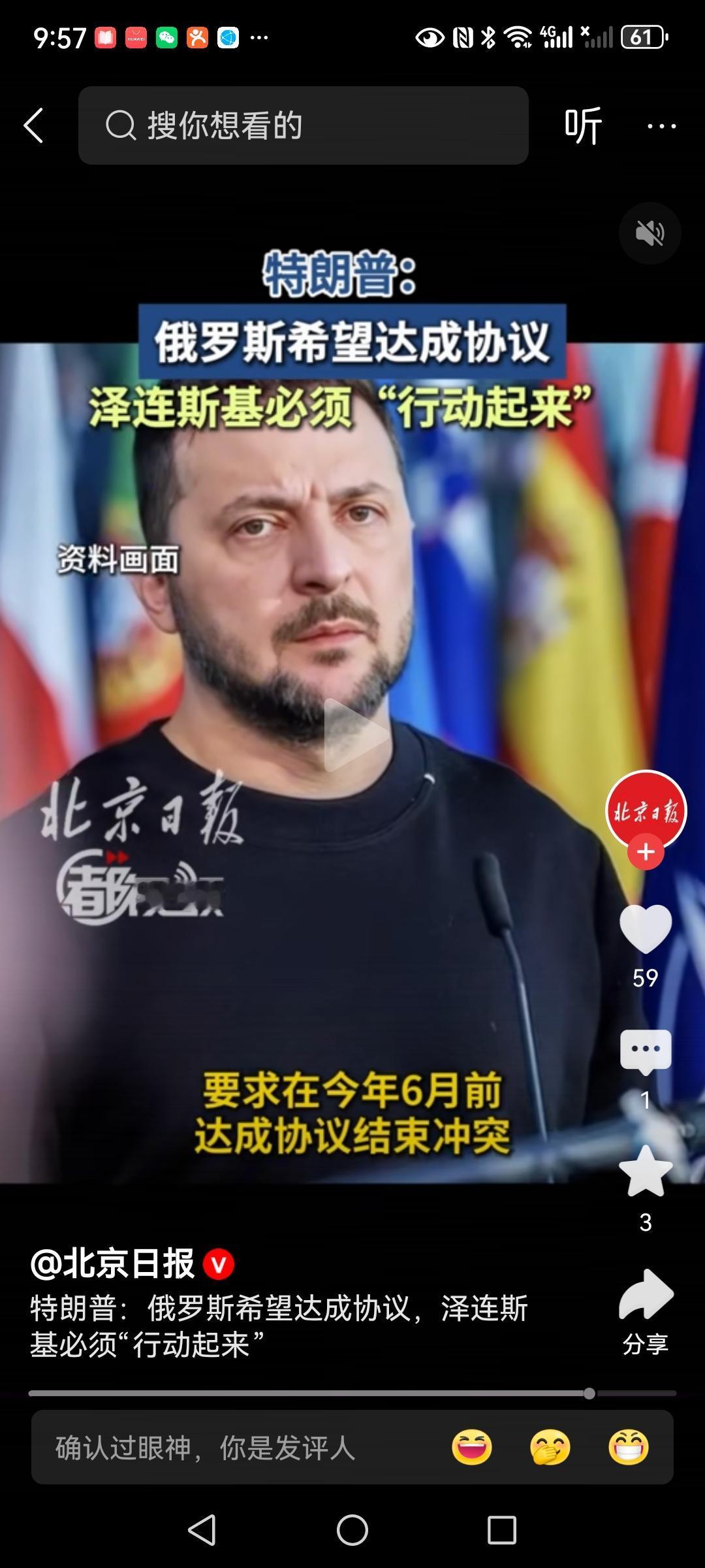 美国总统特朗普最近表示说,俄罗斯希望达成协议,泽连斯基必须行动起来!