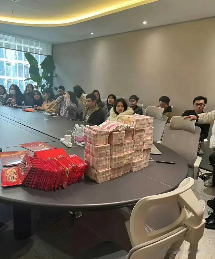 这个老板也真不晓事。 一堆钱和红包都摆在台面上了,还在喋喋不休进行年度总结。 可员工都没有心机听领导说胡话了,眼睛只盯着台面的那堆银纸。 还不如先把年终奖发了,然后再开会,如此,效果还会好一点。