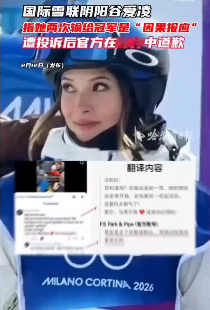 国际雪联阴阳谷爱凌,指她两次输给冠军是"因果报应"。