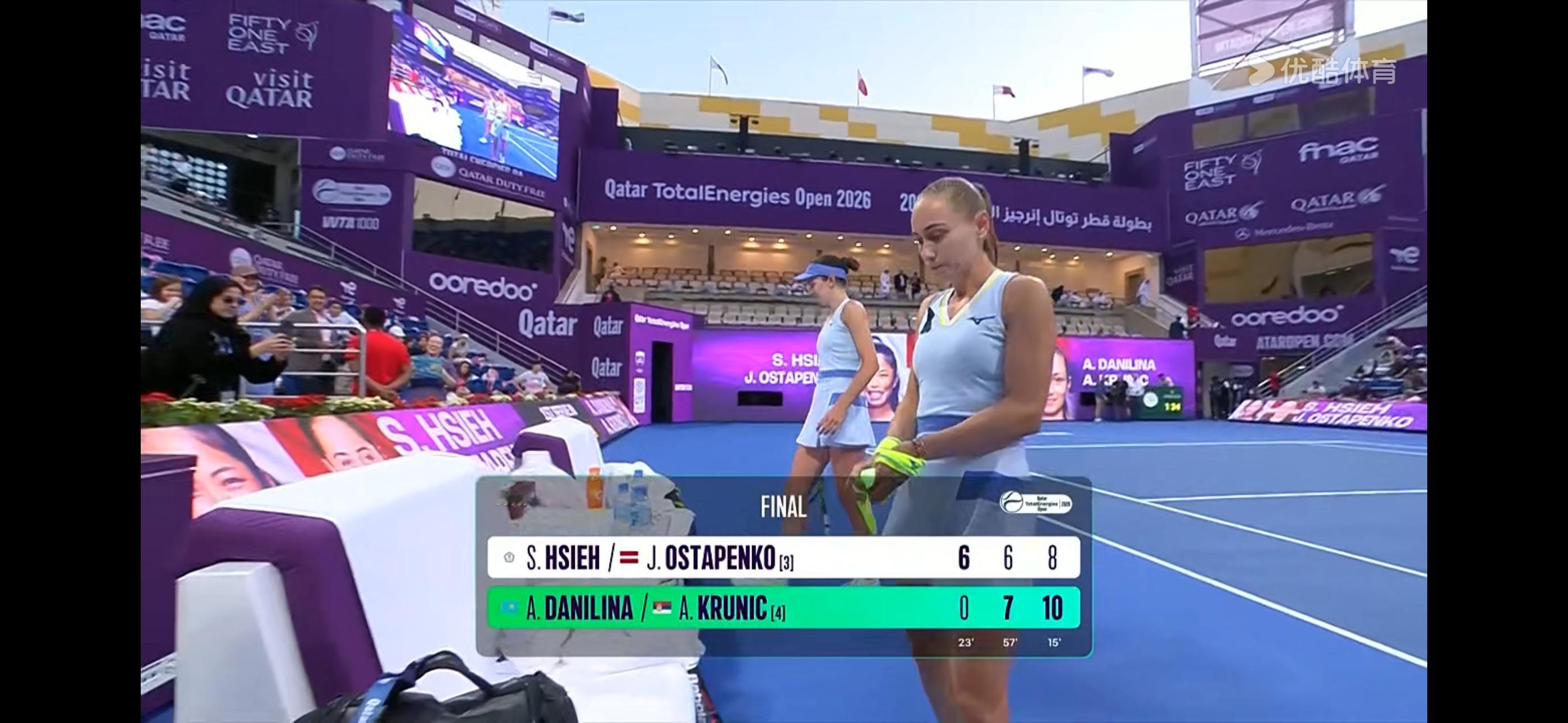 克鲁尼奇今年状态真不错,最终与达尼丽娜以0-6、7-6、10-8逆转谢淑薇/奥斯塔彭科,拿到多哈赛女双冠军