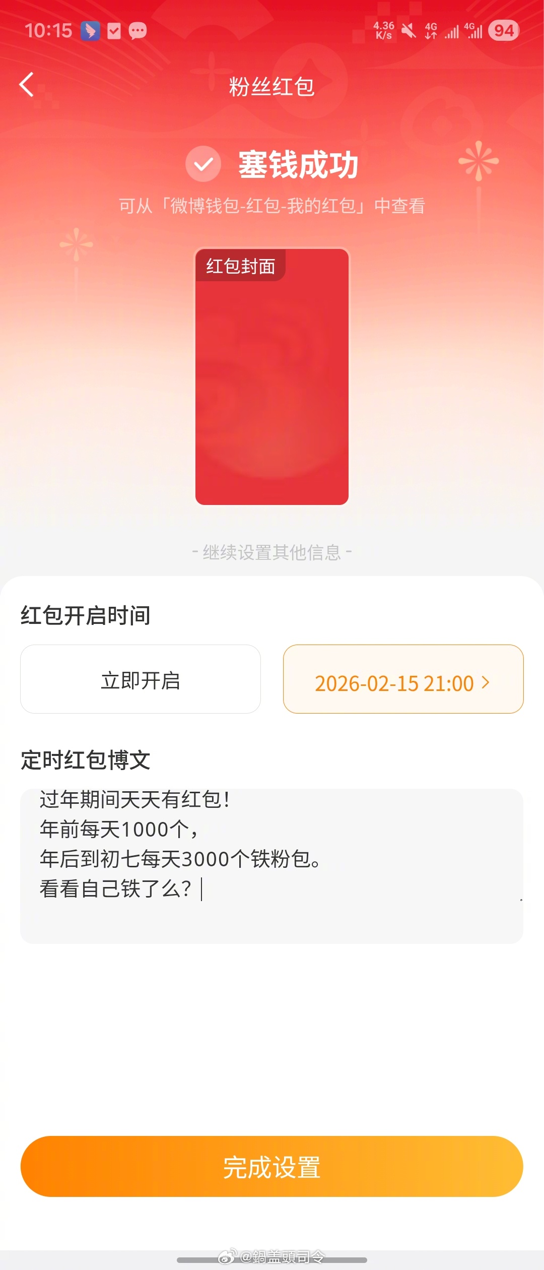 领到#千问红包#和#明星红包# 了么?没领到不要紧!关注我,把我放到#红包分组# 年前每天发1000个红包,年后到初七每天3000铁粉包。明天的已经定时了!记得来!看看自己铁了么?