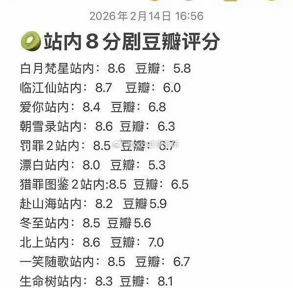 tg:爱奇艺站内8分剧某瓣评分