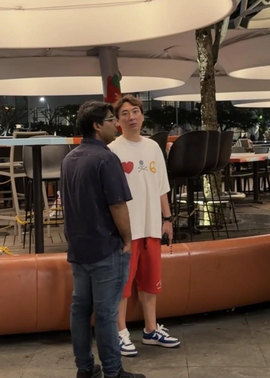 王思聪情人节没有陪女朋友懒懒,而是跑到新加坡的克拉码头与朋友聚会,油腻了好多! 2月14日情人节这一天,别的情侣都在热热闹闹聚聚会,比如吃浪漫的烛光晚餐等,而王思聪分别有女友,却没有陪女友过情人节,而是跑到了新加坡的克拉码头。 只见网友偶遇到了王思聪穿着短袖短裤,短裤是红色的,显得特别亮眼。 王思聪脚上穿了一双蓝色的运动鞋,一看就价格不菲,不知道是不是几百万,估计现在没有了吧,十几二十万是有的,随着万达业务的下滑,他底气不足了,不敢那么张扬了。 网友从后面拍到的王思聪体态太差了,1988年出生的他38岁了,站在那里弯腰驼背地,看着精气神很不好,好像前一晚上熬夜了很久似的。 当王思聪被正面拍到时,能看出来他染了黄毛,刻意扮靓仔让自己显年轻,实际上仔细看他的脸发福了,变圆润了,皮肤还暗黄无光,感觉挺油腻的,就是一个油腻的中年大叔。 王思聪是那么喜欢浪漫的人一个人,今年的情人节,他竟然独自度过,跟一男一女朋友在新加坡的码头闲聊,没有陪现女友懒懒也是没谁了,估计他现在也没有心思高调了。