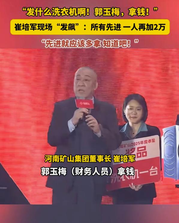 今年河南矿山年会,全场最忙的不是主持人,也不是台上表演的演员,而是矿山的财务部长郭玉梅。 这位财务大姐全程忙个不停,累得腰都直不起来,让人看着又好笑又心疼。 从年会开始到结束,她几乎没休息过。 一直在不停数钱、搬钱,连喘口气的时间都没有。 崔总一门心思给员工发钱,越发越高兴。 给先进员工每人加 2 万。 小组数钱数错,当场加 50 万补上。 喝一杯酒,就宣布加 200 万,还限时 2 分钟把钱拿上台。 台上的现金堆成了山。 崔总笑得合不拢嘴,还直说自己就喜欢给员工发钱。 台下的员工都乐坏了,数钱数到手软。 只有郭玉梅累得够呛,心里默默念叨,老板发钱开心,自己的腰快撑不住了。 网友对此也有不同的说法。 有人说这些都是提前准备好的流程。 也有人觉得这样高调发钱,容易让人只看重金钱。 但能遇上真心实意给员工发钱的老板,真的很难得。 跟着这样的老板干活,就算累一点也心甘情愿。 大家只会怕自己没干好,给老板添麻烦。 老板真心待员工,员工用心干工作,这样的企业才能越做越稳。