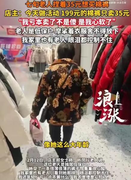湖北十堰,3个老人走进一家女装店,一个老人拿起一条黑色加绒棉裤,甚是喜欢,她跟老板说,我只有35元,可这条裤子是卖199元的,卖35元就亏本了,结果同行老人的一句话,让老板心一酸,就把199元的裤子,以35元的价钱卖给了老人。 湖北十堰,一家开在街边的女装店,老板为人实在,店里的衣服定价公道,款式也贴合大众需求,平时主要接待周边的居民,生意不算火爆,但也安稳有序。 这天下午,店里没有太多顾客,老板正坐在收银台整理货物,突然看到3位老人慢慢走进店里。几位老人年纪都不小了,头发花白,脸上布满了皱纹, 身上穿着不算厚实的旧衣服,袖口和裤脚都有些磨损,走路也有些缓慢,进门后还下意识地搓了搓冻得发红的双手,看得出来,她们平时过得并不宽裕。 3位老人没有四处张望,只是慢悠悠地走到货架前,目光落在了挂着的加绒棉裤上,一边看一边小声念叨着,语气里满是期盼。 其中一位头发最白的老人,停下脚步,伸手拿起一条黑色加绒棉裤,轻轻摩挲着裤子的面料,指尖反复触碰着里面的绒毛,眼神里的喜爱藏都藏不住,拿起又放下,放下又拿起,犹豫了很久,始终舍不得挪开目光。 这条黑色加绒棉裤,是店里卖得最好的款式,面料柔软,绒毛厚实,保暖性特别好,定价199元,不算昂贵,但也绝对不是几十块钱就能买到的。 老板看老人如此喜欢,便主动上前,轻声询问她要不要试穿一下,看看尺码合不合适,还特意说明了裤子的保暖效果,说穿上它,冬天再冷也不会冻腿。 老人听到老板的话,脸上露出一丝局促的笑容,轻轻摇了摇头,又低头看了看手里的棉裤,沉默了片刻后, 才缓缓抬起头,声音不大,带着几分不好意思,小心翼翼地跟老板说明了情况,说自己特别喜欢这条棉裤,可身上只有35元,问老板能不能便宜一点卖给她。 老板听后,脸上露出了为难的神色,坦诚地跟老人解释,这条棉裤的进价就不低,售价199元,除去成本,利润本来就不多,要是35元卖给她,肯定会亏本,而且店里从来没有这么大的优惠力度,实在没法答应。 说完这些,老板也有些不忍,看着老人失落的眼神,又补充了一句,说可以给她便宜一些,算150元,可老人还是轻轻摇了摇头,说自己只有35元,再多一分都拿不出来。 同行老人说,这位喜欢棉裤的阿姨是独居老人,没有子女照料,每个月只有一点微薄的生活费,平时省吃俭用,连件厚实的衣服都舍不得买, 这几天天气越来越冷,她冻得实在受不了,才想着凑点钱,买一条加绒棉裤,抵御寒冬。说着,还指了指老人单薄的裤子,说她里面就穿了一条薄秋裤,看着都让人揪心。 老板顺着同行老人指的方向看去,果然看到老人的裤子很单薄,裤脚还短了一截,露出了冻得发红的脚踝,再看看老人局促又失落的模样,心里的愧疚和心疼瞬间涌上心头,再也顾不上亏本不亏本。 她连忙走上前,从老人手里接过棉裤,笑着对老人说,没事,35元就35元卖给你,就当是给你送一份温暖,不用觉得不好意思。 老人听到老板的话,瞬间愣住了,脸上写满了难以置信,过了好一会儿,才反应过来,激动得说不出话来,紧紧攥着老板的手,一个劲地表示感谢。 老板连忙拍了拍老人的手,示意她不用客气,还帮老人把棉裤叠好,装进袋子里,递到老人手里,叮嘱她天冷多穿点,注意保暖。 不少网友都被老板的善意打动,说这才是最温暖的生意,亏本也心甘情愿,也有网友感慨,老人们的窘迫让人心疼,同行老人的坦诚和老板的善良,都是寒冬里最动人的光。 老板后来也说,虽然这笔生意亏了钱,但她一点都不后悔,看着老人穿上温暖的棉裤,她心里也暖暖的。 对此,你们有什么看法,欢迎评论留言~