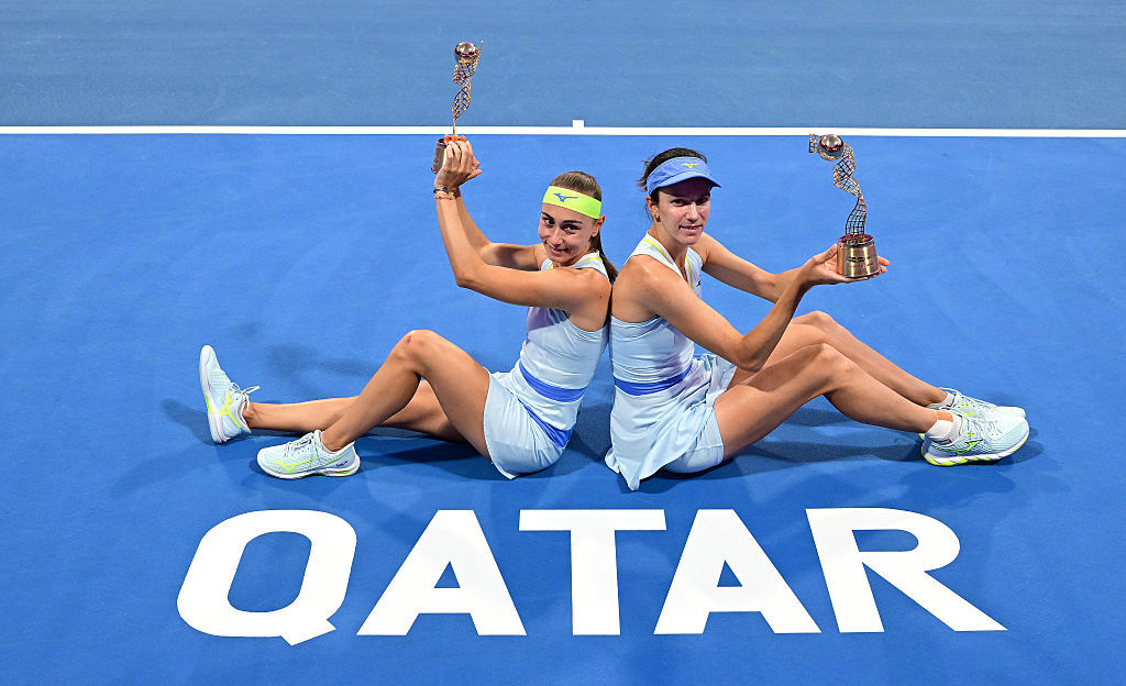 达尼丽娜/克鲁尼奇多哈站双打捧杯图送上👏