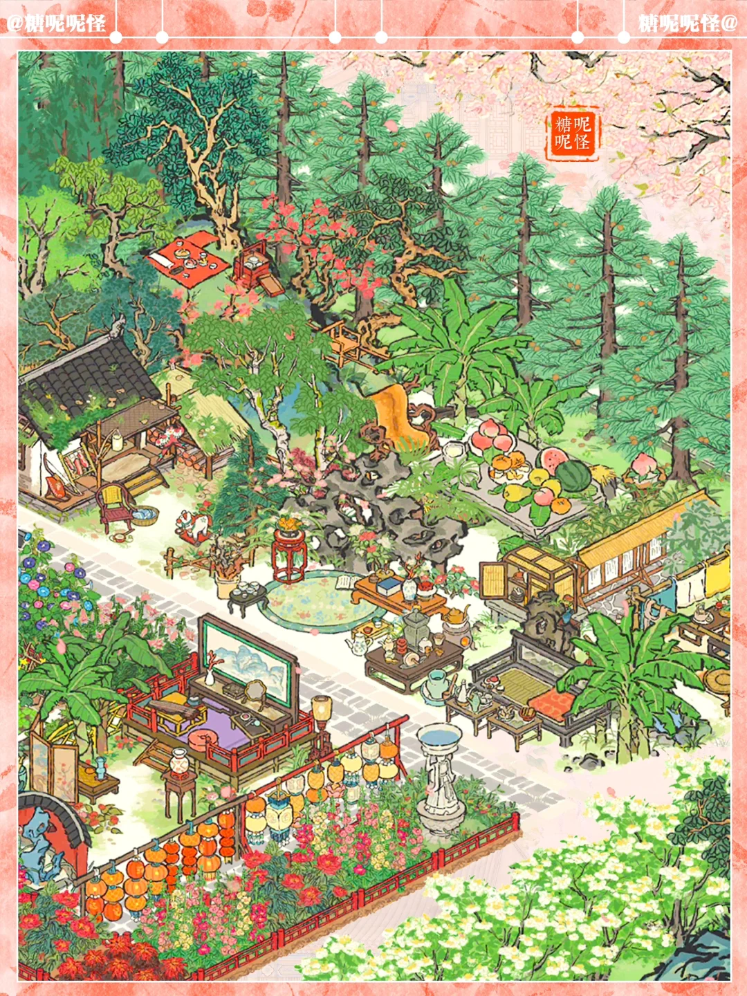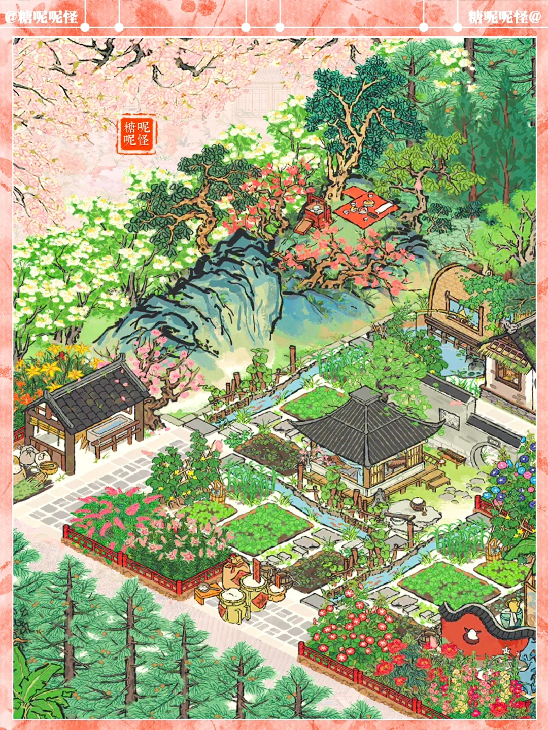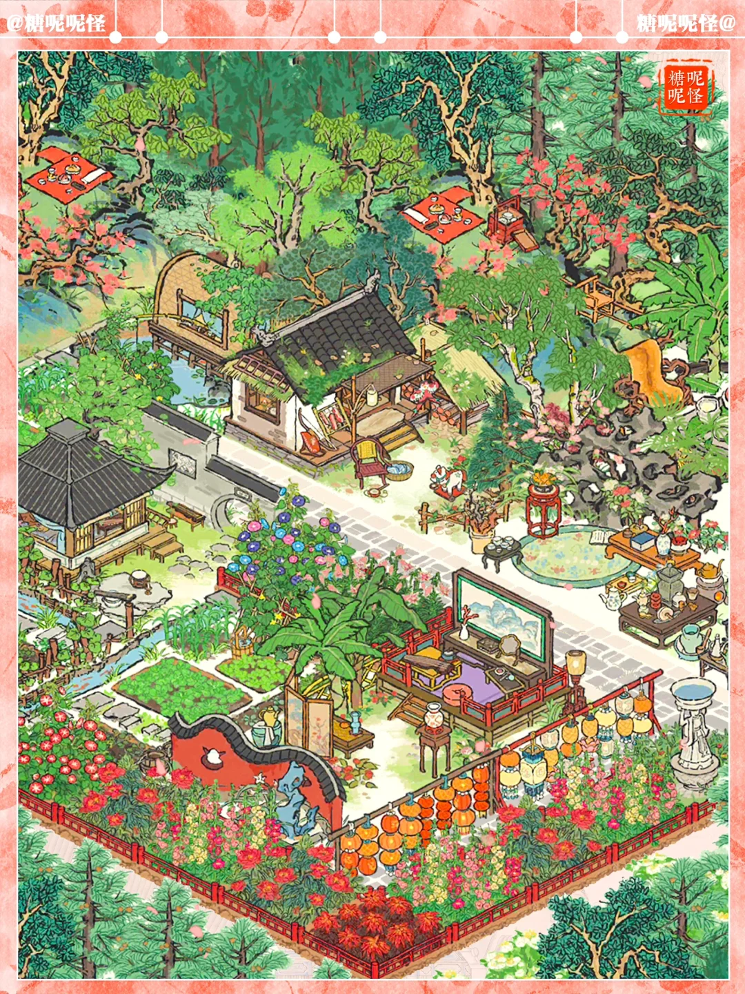 😽如果可以,我想要N个溪畔悠悠,真的太百搭了 😻发现溪畔悠悠和鸣琴春晓也很搭 [哇R]建筑:溪畔悠悠|鸣琴春晓|猎人小屋|风雅琴院|蟠桃盛宴|晴春宴幄|春日踏青