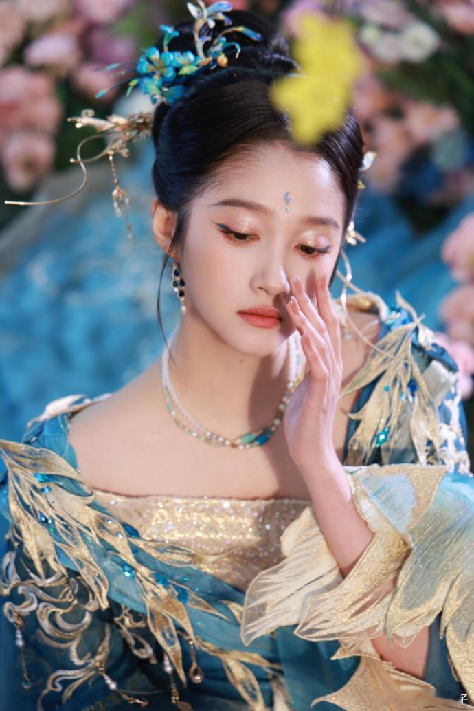 哦莫哦莫!仙女动起来果然很美了!!整体妆造以山水画卷为主题,身着湖蓝鎏金服饰,眼尾处点缀青绿色眼线,化身神话青鸟神女,唤醒冬眠生灵、催开万花,生生不息。 关晓彤真的妥妥“国泰民安”脸!是画卷中走出的东方佳人!关晓彤青绿国风扮相 化妆: