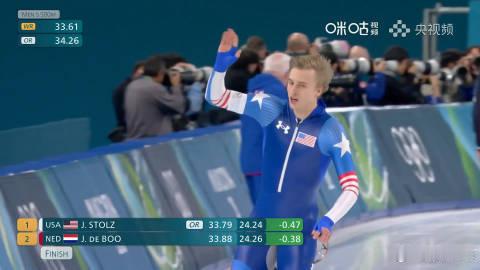 米兰冬奥会速度滑冰男子500米决赛,美国选手乔丹·斯托尔兹伊滑出33秒77,再次刷新奥运纪录。
