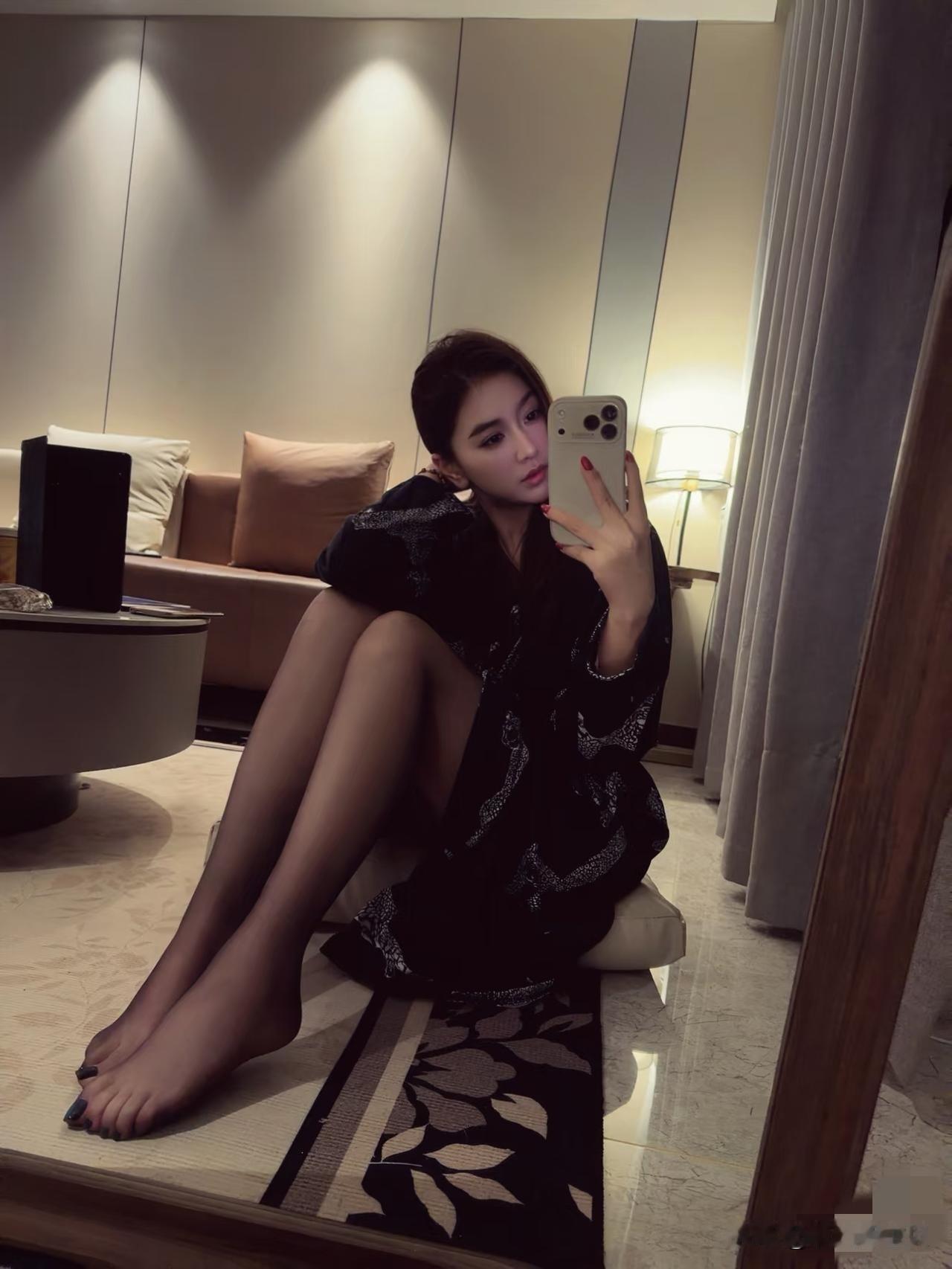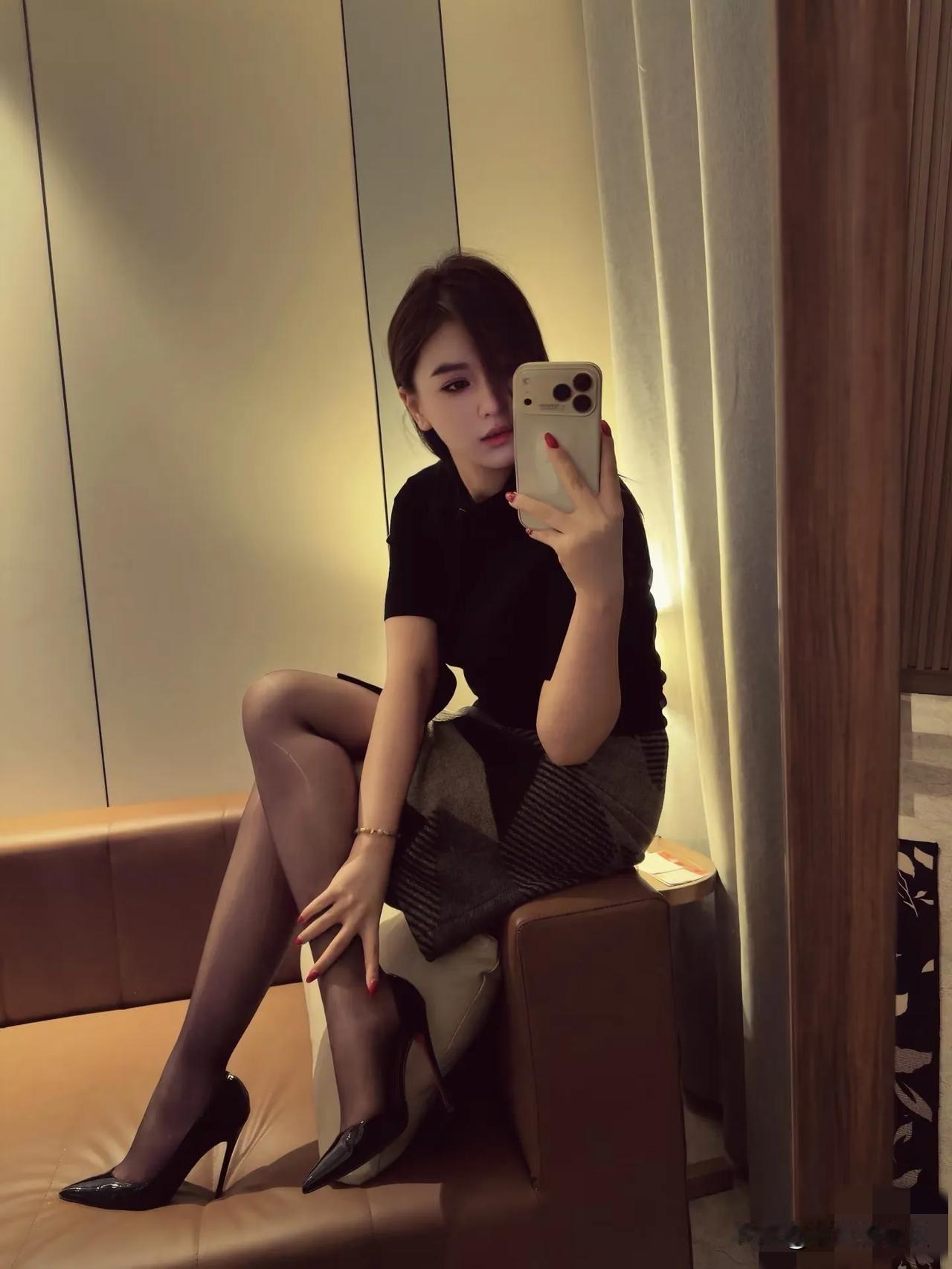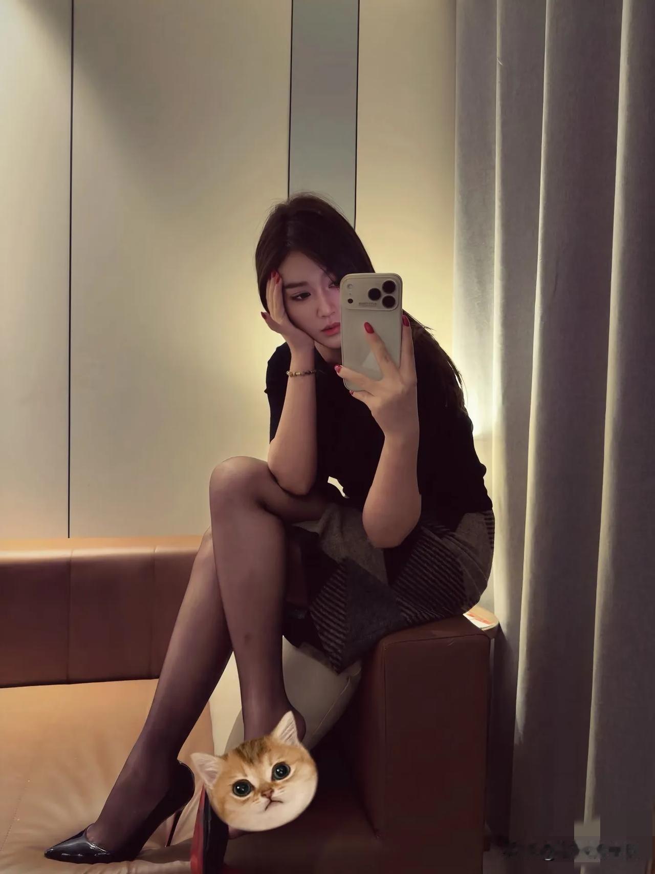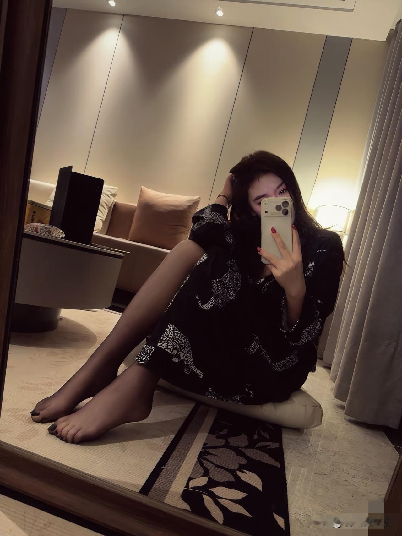 🌙 夜色氛围感 暖光漫过沙发,把夜色揉成温柔的底色。 丝绒黑裙裹着慵懒,黑