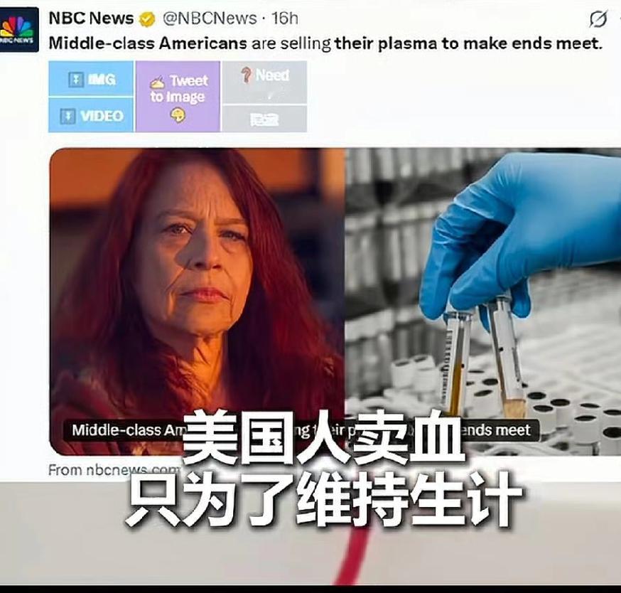 美国有很多遥遥领先,其中一项就是卖血,美利坚合众国以约全球 4% 的人口供应着全球约 70% 的血浆市场,他们的资本是真喝人血的,以前美国副总统万斯就经常卖血挣钱。 美国人卖血是传统,英国80年代第一批艾滋病就是因为医院用了美国血制品。美国卖血已经彻底产业化了,玩法是首抽奖励,全勤奖励,抽血活动一周只限两次。相比之下, 余华的许三观卖血记都像童话故事了。