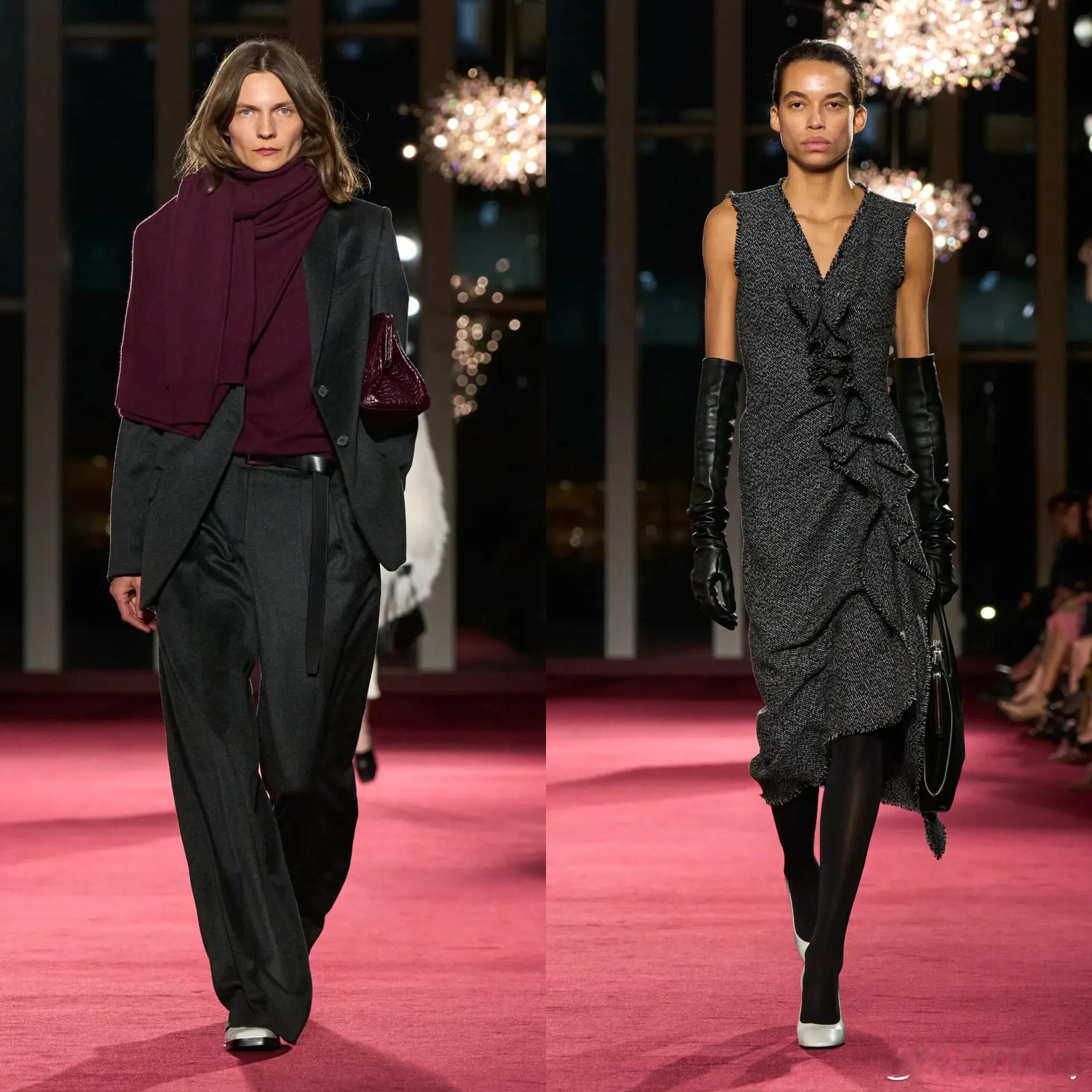 时装周纽约时装周 Michael Kors 2026秋冬大秀于纽约大都会歌剧院震撼启幕,献礼品牌45周年!以“配得上威尔第咏叹调的戏剧化时尚”为核心,红色跑道与歌剧殿堂庄重交融,时尚与艺术无缝共鸣。专属编曲将古典咏叹调与现代节奏精妙融合,成为秀场隐形叙事线;达科塔·范宁、玛丽·J·布莱姬、百老汇群星齐聚,共鉴这场纪念与艺术兼具的盛宴。歌剧手套、瀑布垂坠耳环、羽毛细节、红色缎面斗篷与人造皮草气场拉满,恪守精简奢华;日间利落剪裁风衣、西装与不对称半裙平衡结构与松弛,晚装以亮片针织混搭休闲,重新定义红毯舒适美学。全年龄段模特演绎极致包容,品牌首位广告代言人克里斯蒂·特灵顿·伯恩斯压轴登场,Studio 54复古旋律奏响,回望初心、致敬45年优雅沉淀。当代轻奢舒适美学再定义。大秀直击