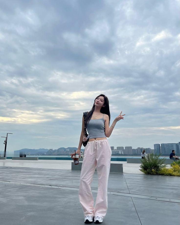 灰色小吊带贴身显瘦,露一点小蛮腰刚刚好,风吹过超级有感觉!搭配宽松粉色棉麻裤,松垮却不邋遢,满满随性少女感。手里的冰美式就是点睛之笔,喝一口整个人都温柔清醒了☕️ 今天云厚风凉,但心情超棒~站在江边看山看桥,烦恼全被吹走啦!姐妹们,这种“看似随意其实很精致”的穿搭,你们get了吗?平时更爱清晨阳光look还是黄昏云彩氛围呀?最想在哪个场景cos我这套?快来评论区pick一个~想看更多日常穿搭记得收藏哦🌅蓝色阔腿裤穿搭 吊带阔腿裤穿搭 小衫阔腿裤搭配 灰色阔腿裤穿搭 灰色背带裤穿搭