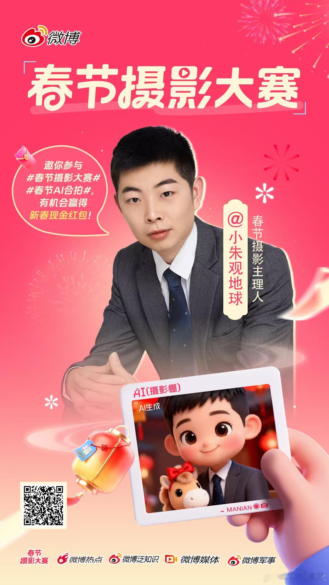 解锁新春限定身份春节摄影大赛 新春摄影主理人!这个春节,镜头交给你,一起捕捉专属年味。无论是跨越山海的云团圆、创意满满的赛博全家福,还是用AI把家人的梦想具象化……今年的团圆,不止定格在镜头,更能用AI创作出你的专属新春大片。带 春节AI合拍 和 春节摄影大赛 话题发博,分享你的AI新春合影与背后故事。优质博文有机会登上