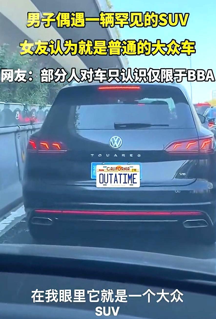 路上看见辆稀罕车,你激动得不行,结果副驾那位来一句:“这不就个大众吗?”瞬间让你没了脾气。 浙江一小伙和女朋友出门就碰上这事。 等红灯时他看见前面是台V6途锐,赶紧让女朋友看,结果人家压根不觉得这“大众SUV”有啥特别。 小伙解释这车和卡宴同平台,里子硬得很,可女朋友一句“不懂,看着都一样”,直接让他沉默。 这场景是不是特熟? 说白了,就是关注点不同。 你眼里的宝贝,别人可能觉得平平无奇。 就像女生分得清口红色号,男生看却全是“红色”;男生聊发动机、差速器头头是道,在不少女生看来,车标可能才是重点。 话说回来,这途锐确实是个“低调实力派”,3.0T V6,该有的配置全上,价格也不菲。 买它的人,图的就是个懂行和不张扬。 所以啊,有时候不是东西不值钱,是看的人不同。 你们有没有过这种“对牛弹琴”的瞬间?评论区聊聊呗。