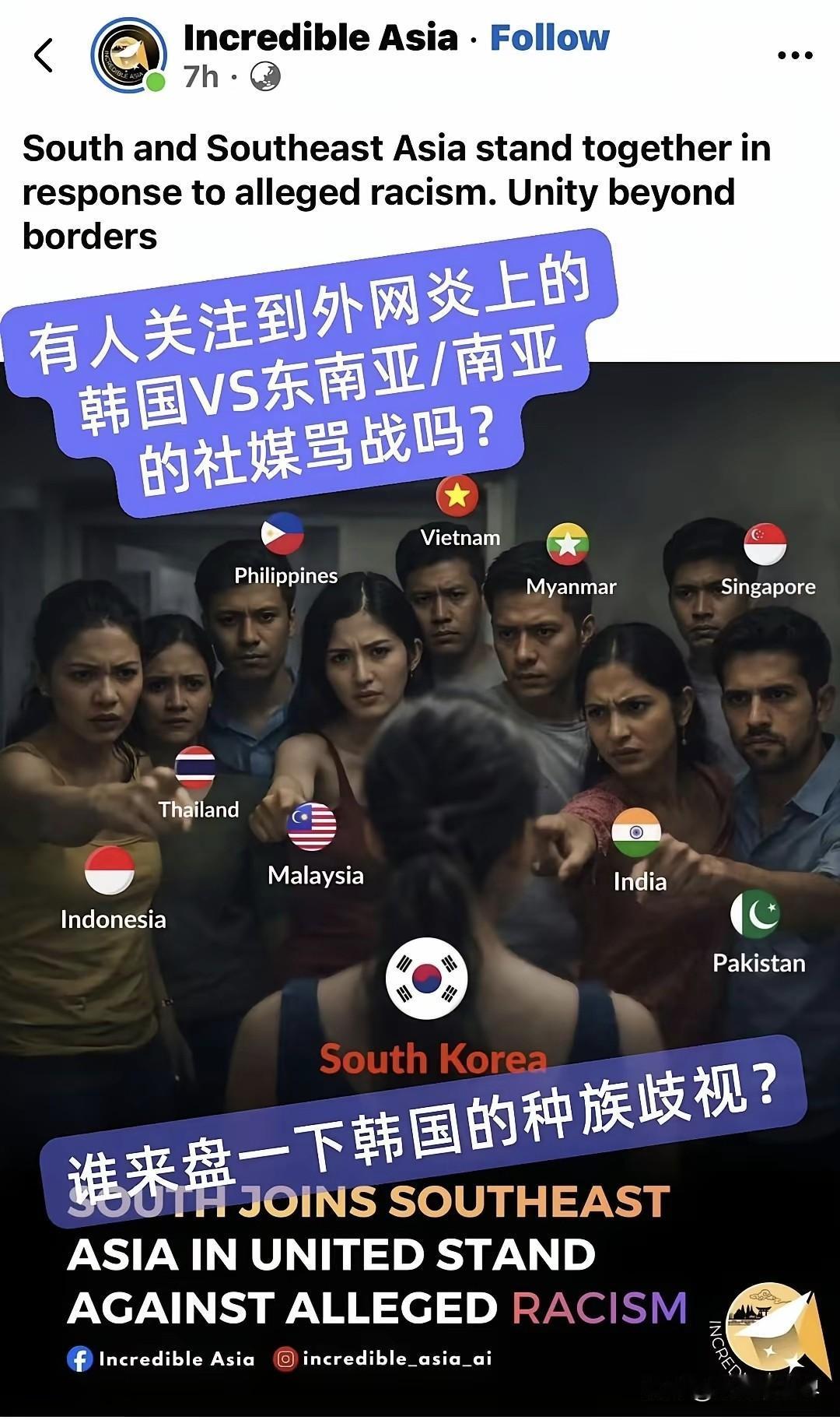 韩国与东南亚网民之间的网络口水大战愈演愈烈,背后其实就是各自发展水平差距产生的隔阂而已。 韩国跻身发达国家之列不过几年,似乎有些狂悖起来。今天指指点点这个,明天指手画脚那个,总觉得自己宇宙无敌和油管五常不是白给的。其实都是些小国寡民之间的争吵罢了,真正的大国和大国之民正在埋头干大事,根本无暇他顾。